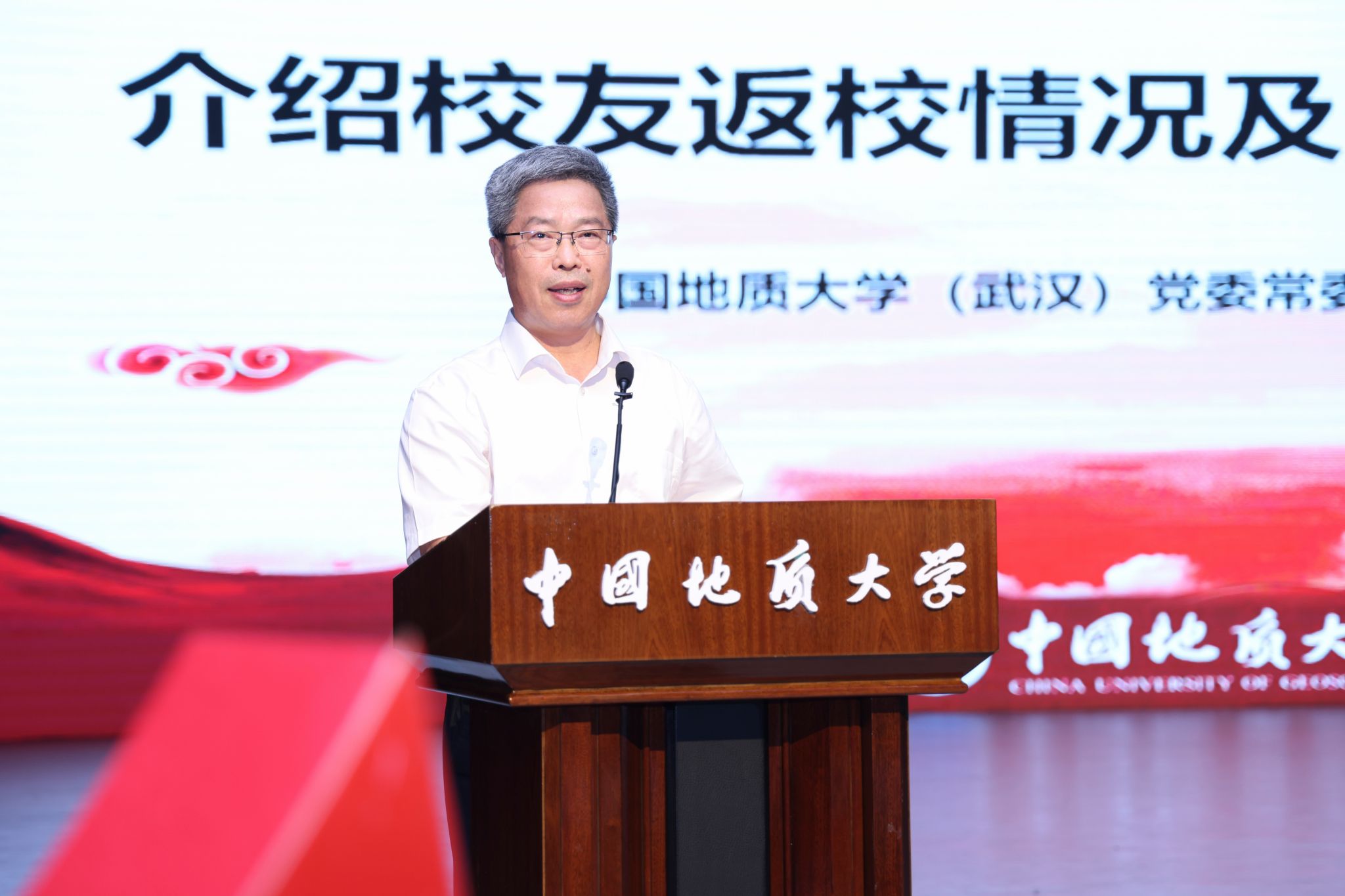 王华介绍参会领导和嘉宾及校友返校基本情况。他说,大家相聚于此,共叙师生情谊,共享同窗欢聚,与同学、老师欢聚一堂,回顾大学时光,畅谈奋斗感悟,共庆祖国华诞,体现出了对母校深厚的情感和对祖国深切的热爱。