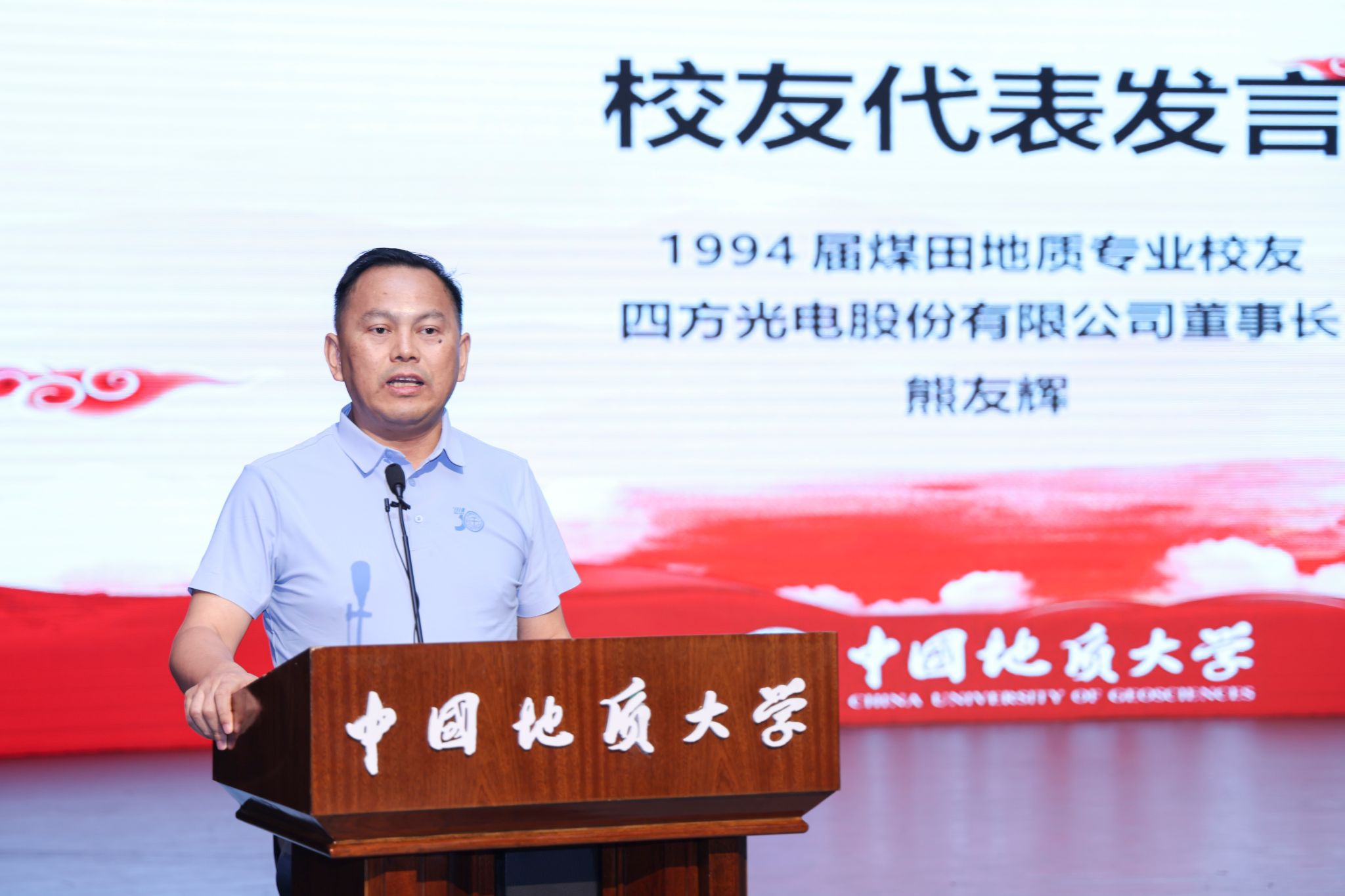 1994届煤田地质专业校友、四方光电股份有限公司董事长熊友辉表示,人生最需同窗日,岁月留意师生情。他表示,回到母校,再次回顾年少时期的初心,再次聆听老师的谆谆教诲,汲取到更多力量,将奋勇攀登新高峰,为国家做出更大的贡献,为母校赢得更多的荣誉。