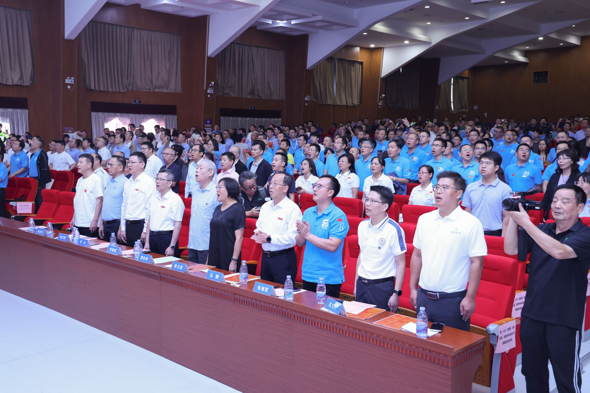 与会人员全体起立,齐唱国歌。