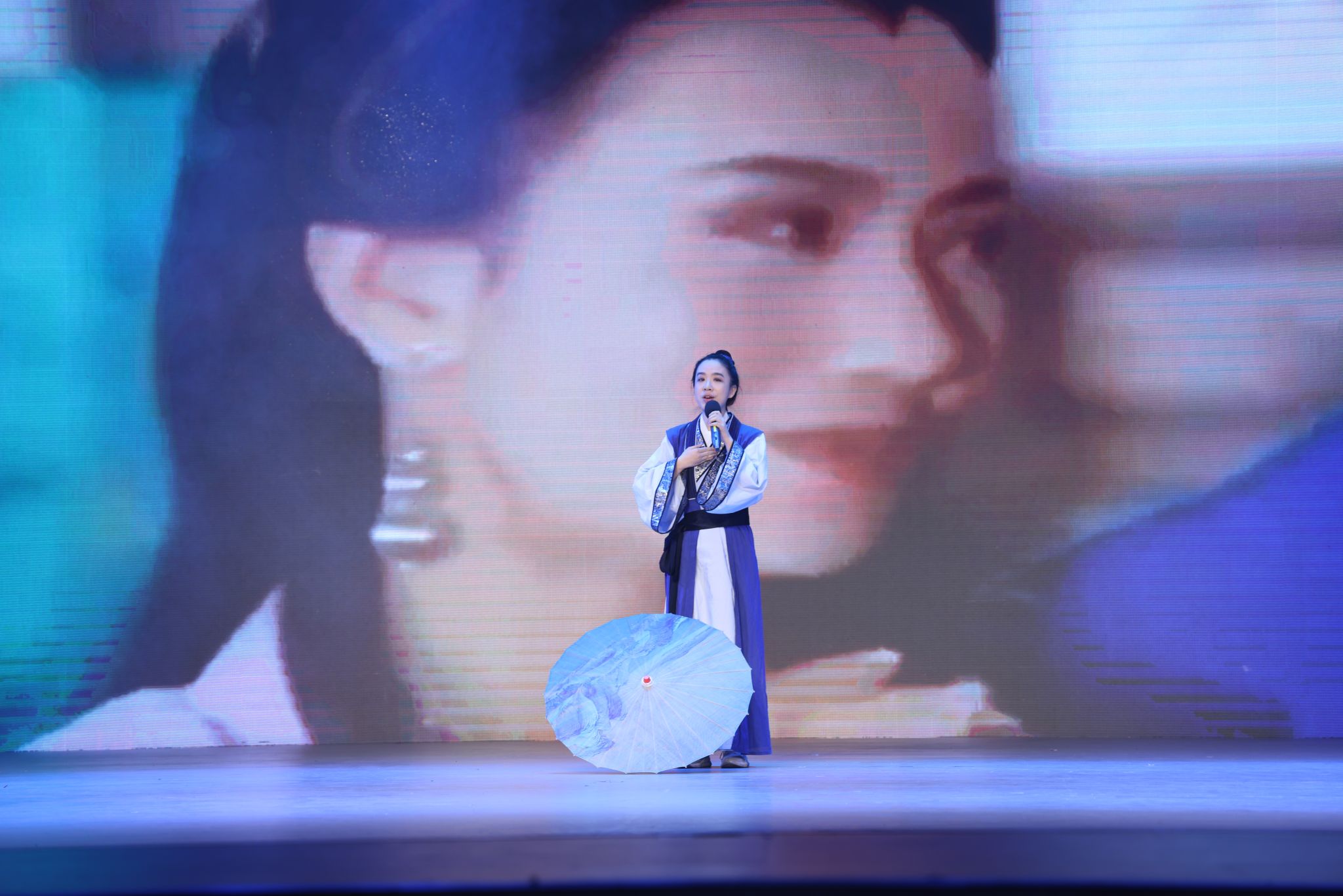 学校舞蹈团表演舞蹈《碇步桥》。