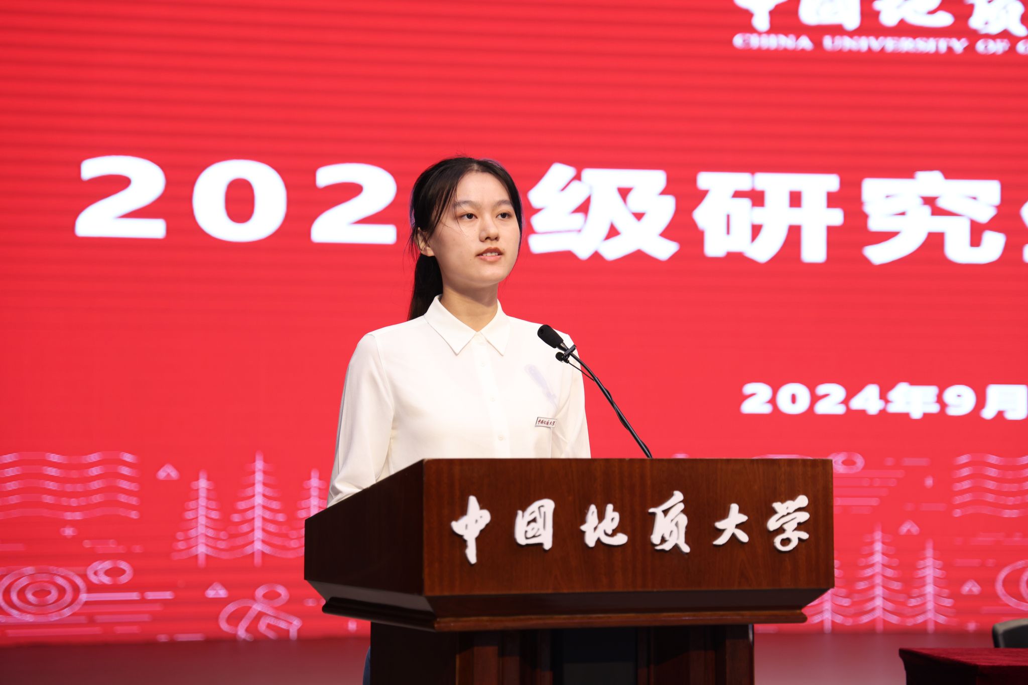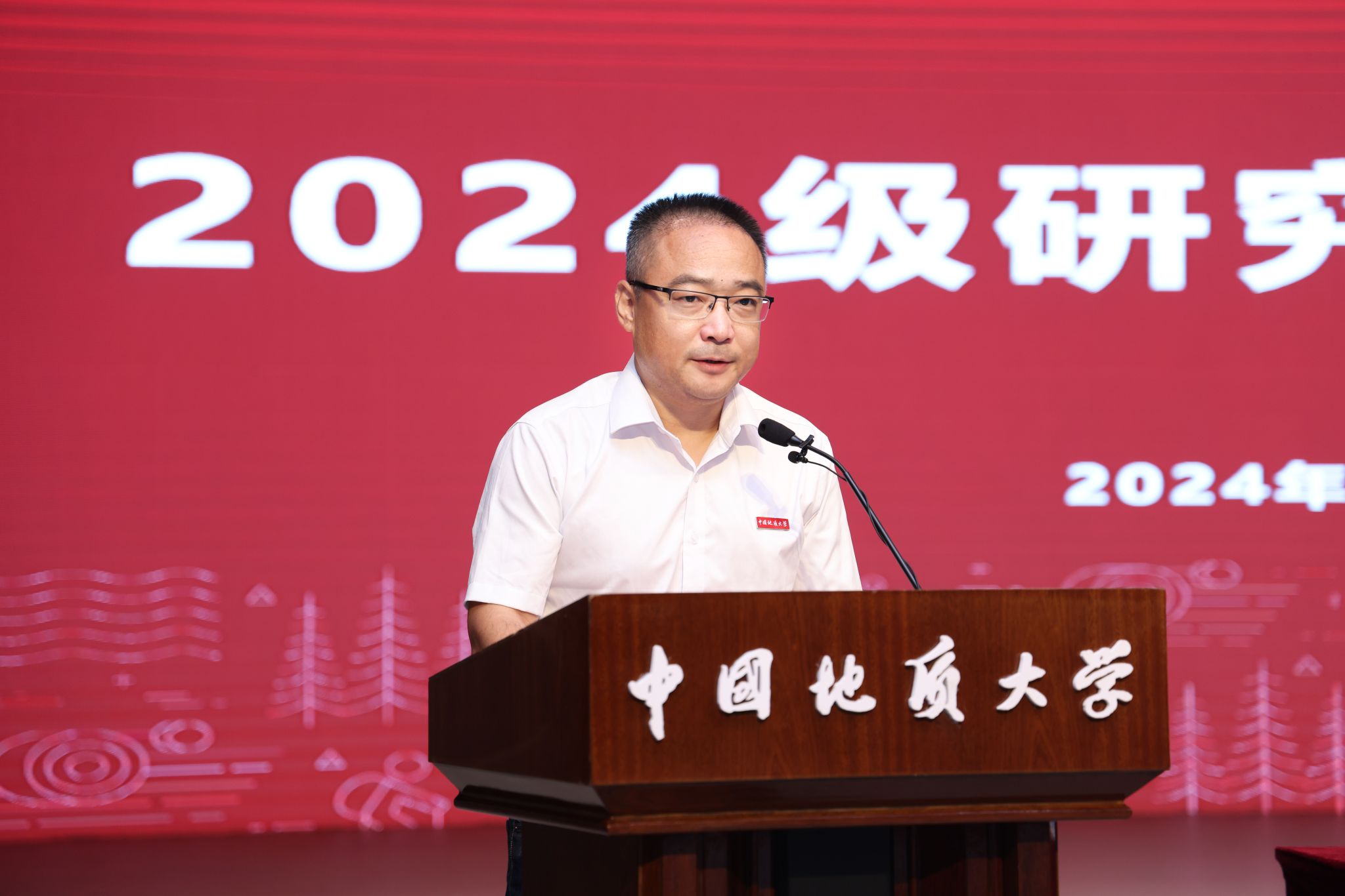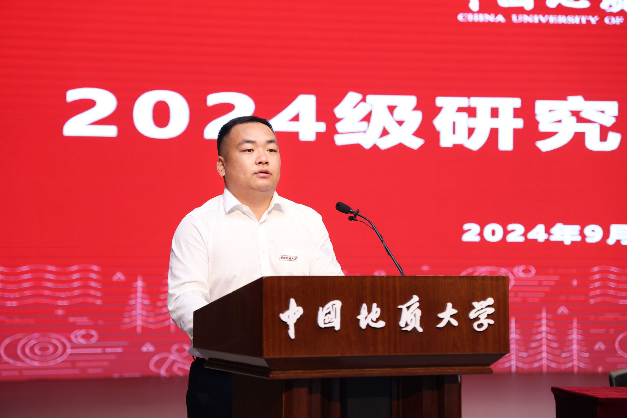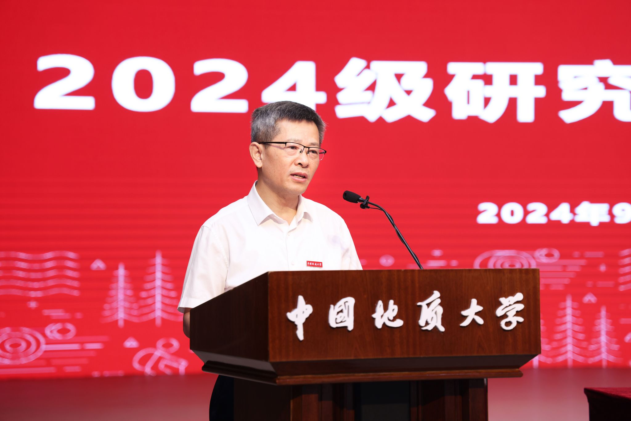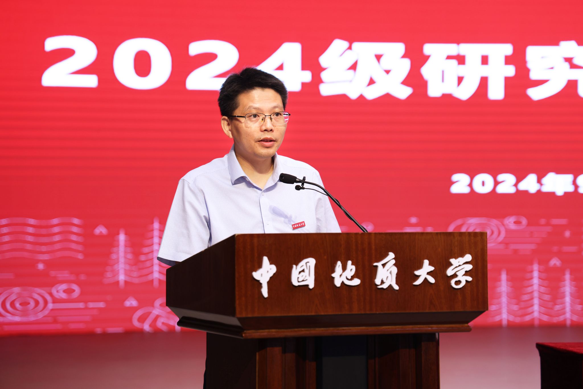 研究生导师代表、地质过程与矿产资源国家重点实验室数学地质导学团队主导师左仁广教授发言。他说,研究生阶段要学会感恩、敢于创新、加强协作,不断传承优良品质,才能获得成长。他希望正值青春年华的同学们心系家国、理必求真,做科研创新的宠儿;勇立潮头,敢为人先,做突破国际学术前沿和服务国家重大需求的践行者,用奋斗书写属于自己的最美画卷。