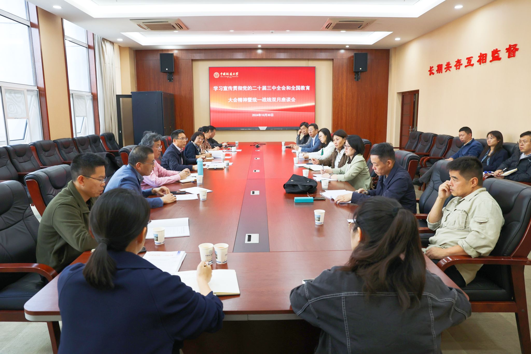 按照学校党委《关于深入学习宣传贯彻党的二十届三中全会和全国教育大会精神的通知》的要求,党委统战部制定学习方案,做好统筹规划,丰富学习形式,提升学习实效。8月26日至9月29日期间组织学校党外代表人士、各民主党派基层组织和统战团体负责人、骨干成员、新进成员等近40人,分批参加3期共计12天的集中轮训;通过“同心论坛”“南望同心”组织党外代表人士开展两期专题学习热议,线上线下同步加强教育宣传;结合纪律学习教育,组织学校各民主党派代表、无党派人士及部分校知联会会员赴中国共产党纪律建设历史陈列馆和中共五大会址纪念馆参观学习。