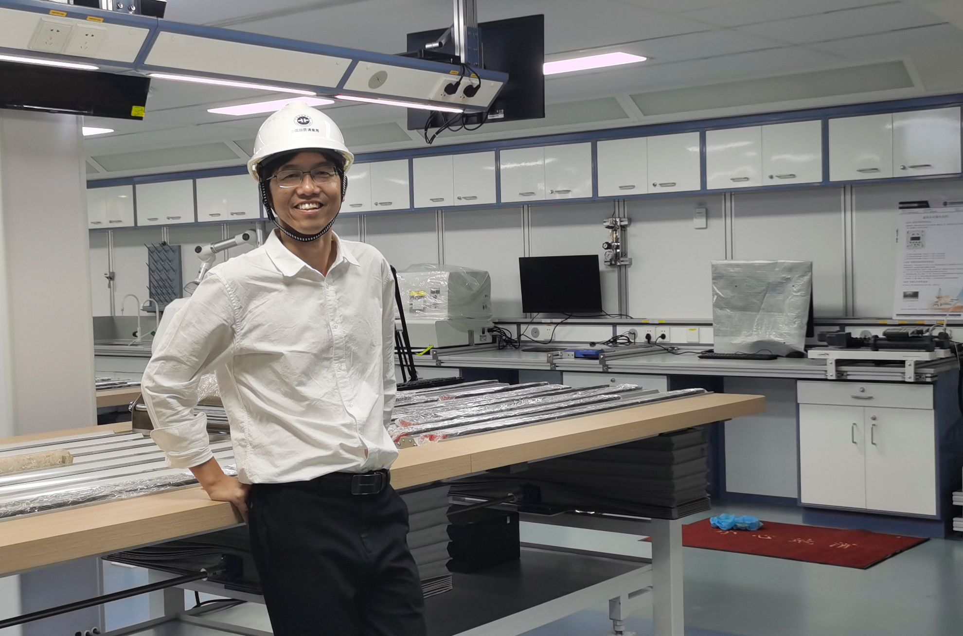 宁伏龙教授参加大洋钻探船海试,在岩心转运系统现场工作