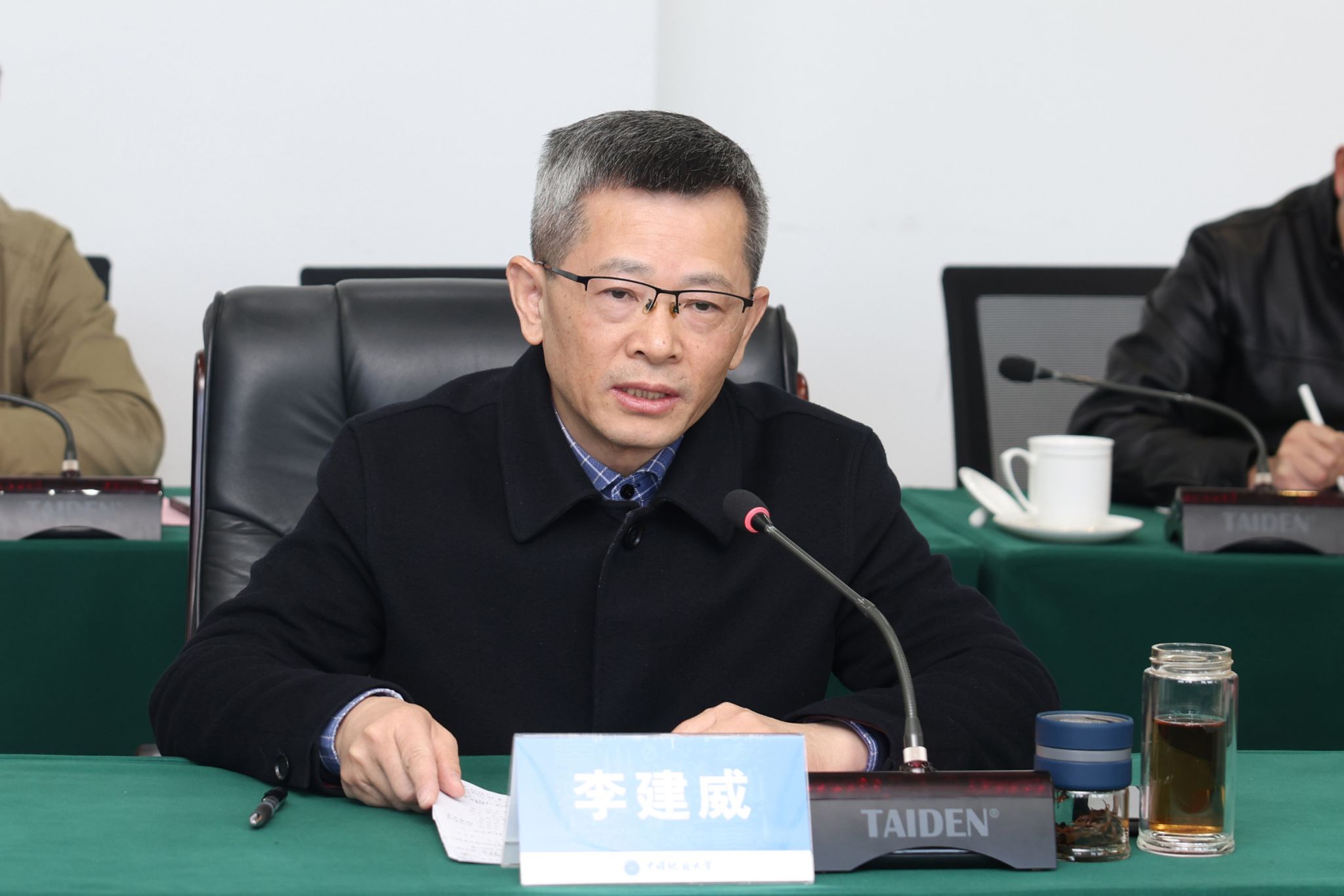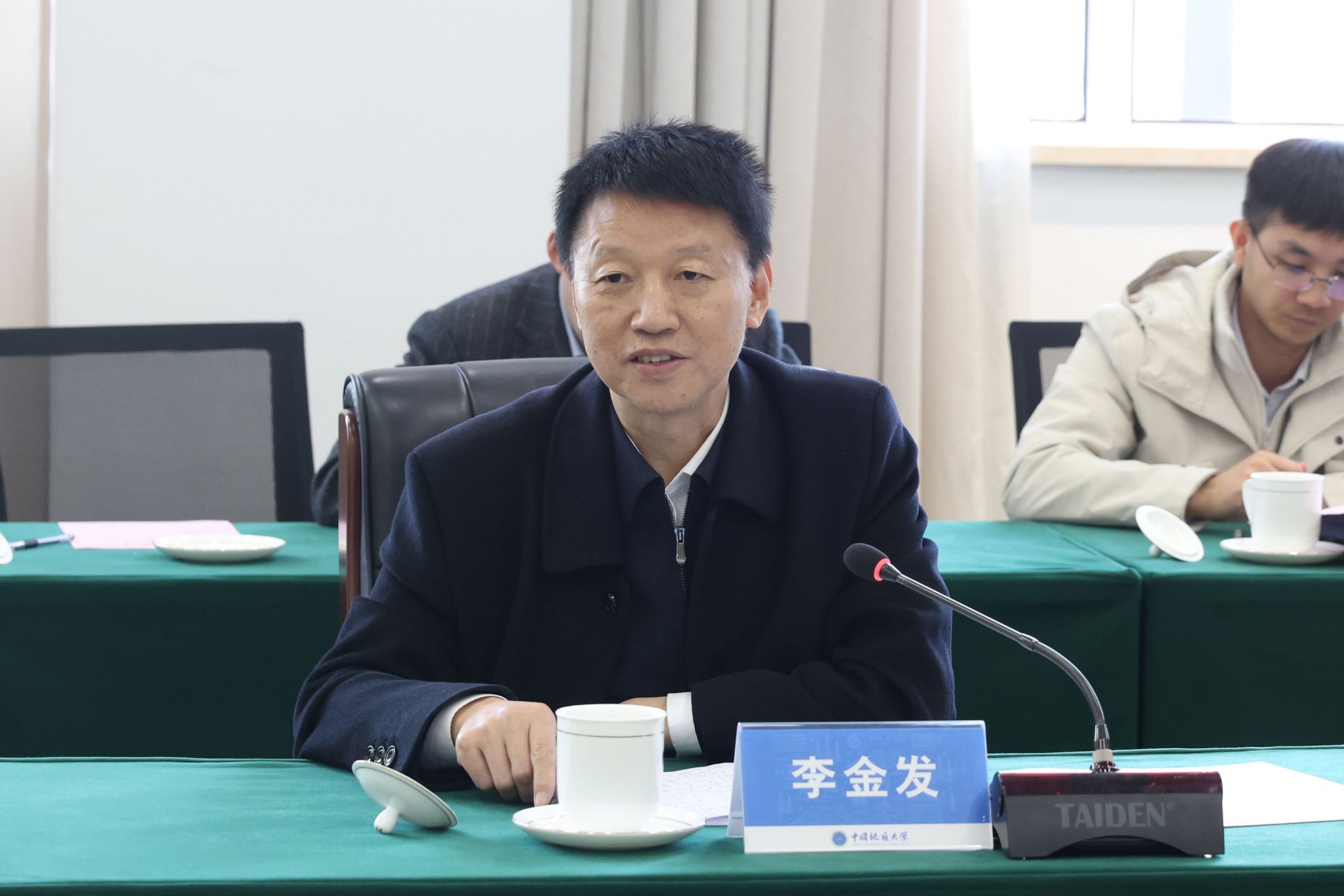 李建威代表学校向李金发一行表示欢迎,并对中国地质调查局对学校长期的支持和关注表示感谢。他希望学校能在科技创新、人才培养、平台共建共享等领域,进一步深化与中国地质调查局和中国地质科学院的合作,服务新一轮找矿突破战略行动,深度参与国家重大科技专项,联合攻关,实现地质科技创新,为建设科技强国作出贡献。