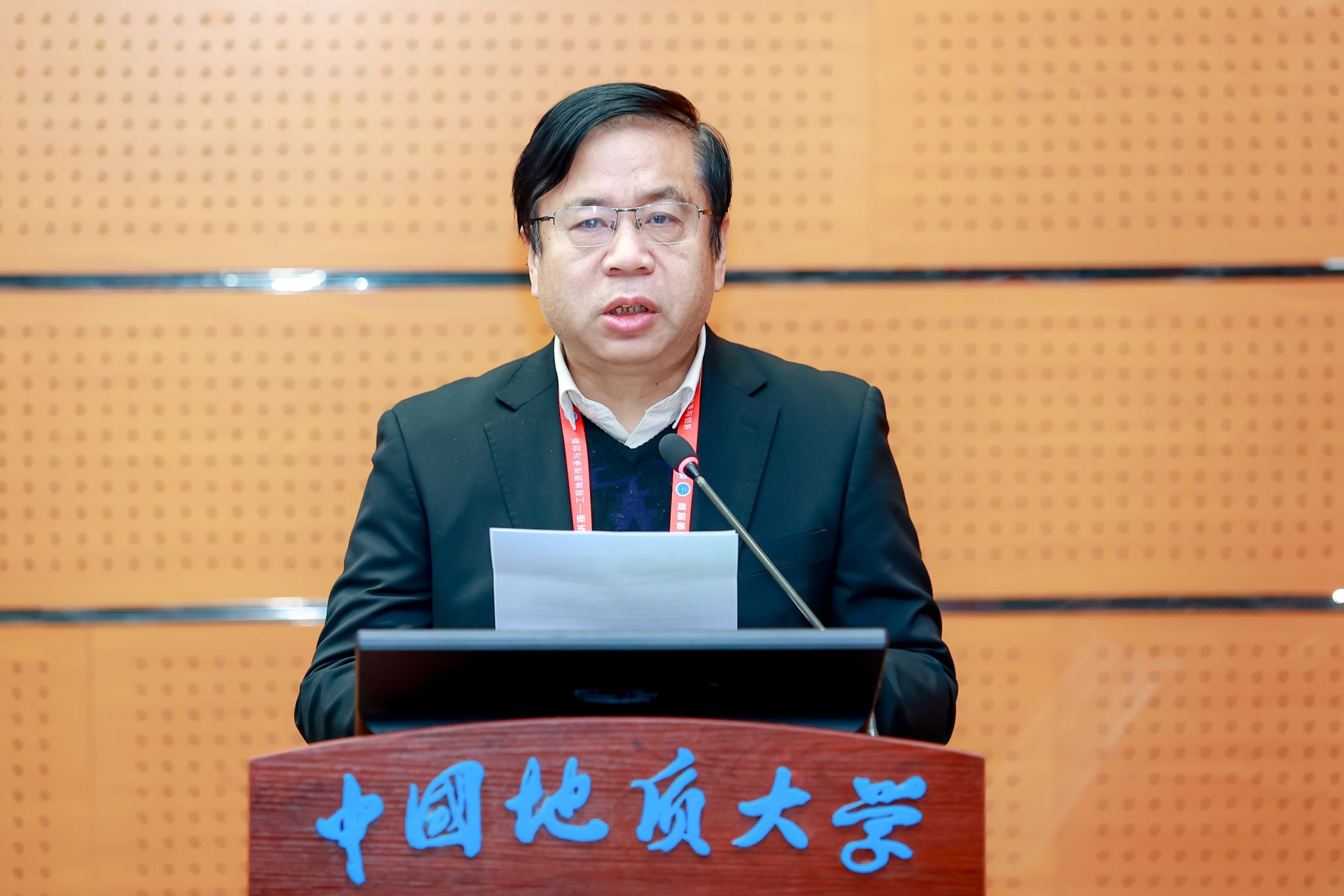 中国科学院院士、长安大学彭建兵教授致辞。他讲述了晏同珍先生在滑坡学研究以及促进工程地质学科发展等方面作出的杰出贡献。他特别强调晏同珍先生潜心育人、孜孜不倦,培养了一批优秀学子,成长为我国滑坡致灾理论研究、区域预测预报、地质灾害防治领域的学术骨干。他希望工程地质领域学者要传承和发扬先生治学精神,推动学科创新性发展。