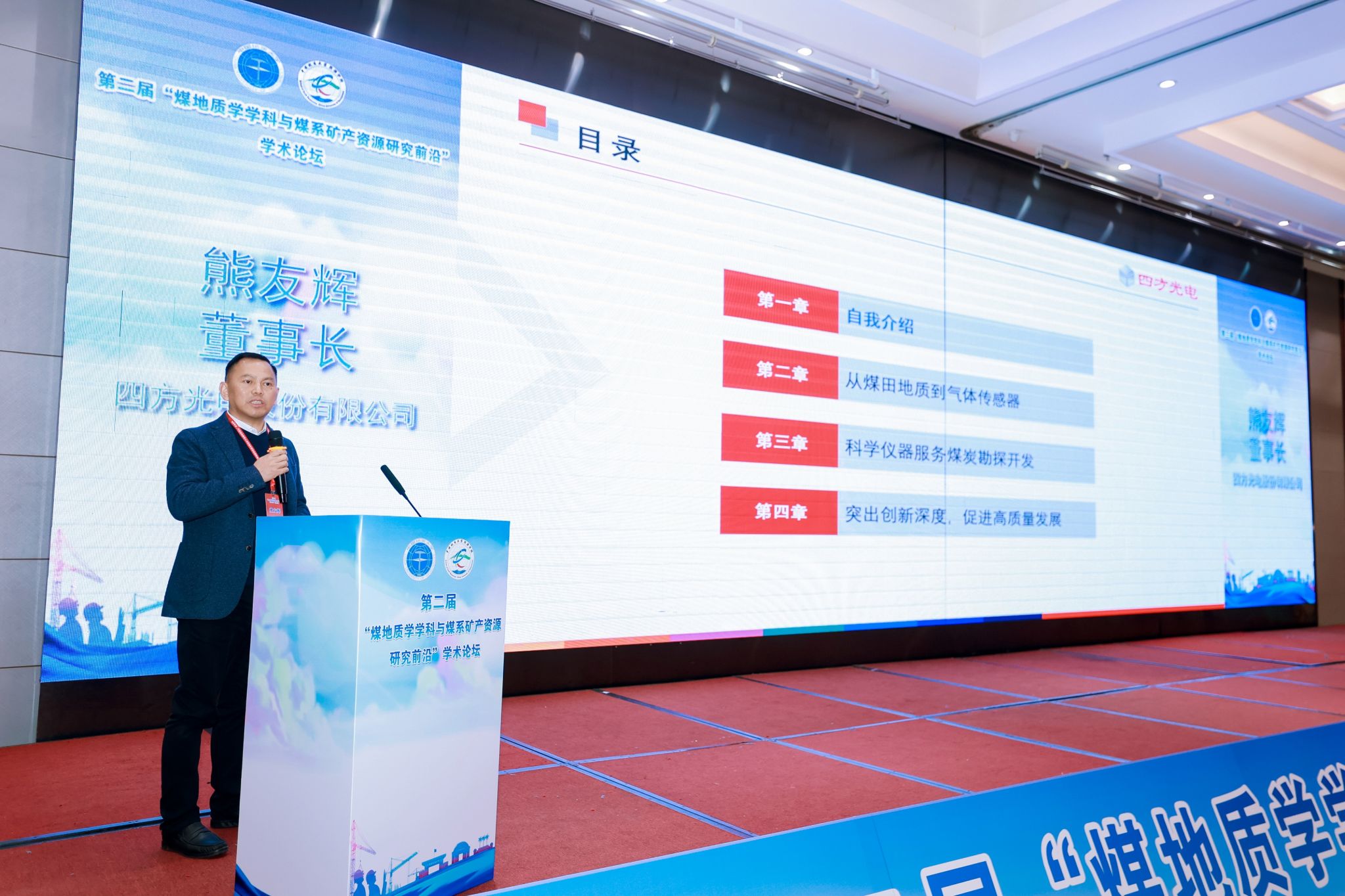 开幕式后,中国工程院院士王双明、中国矿业大学(北京)代世峰、中国煤炭地质总局教授级高工任辉、四方光电股份有限公司董事长熊友辉和opta足球焦养泉教授分别作大会报告。