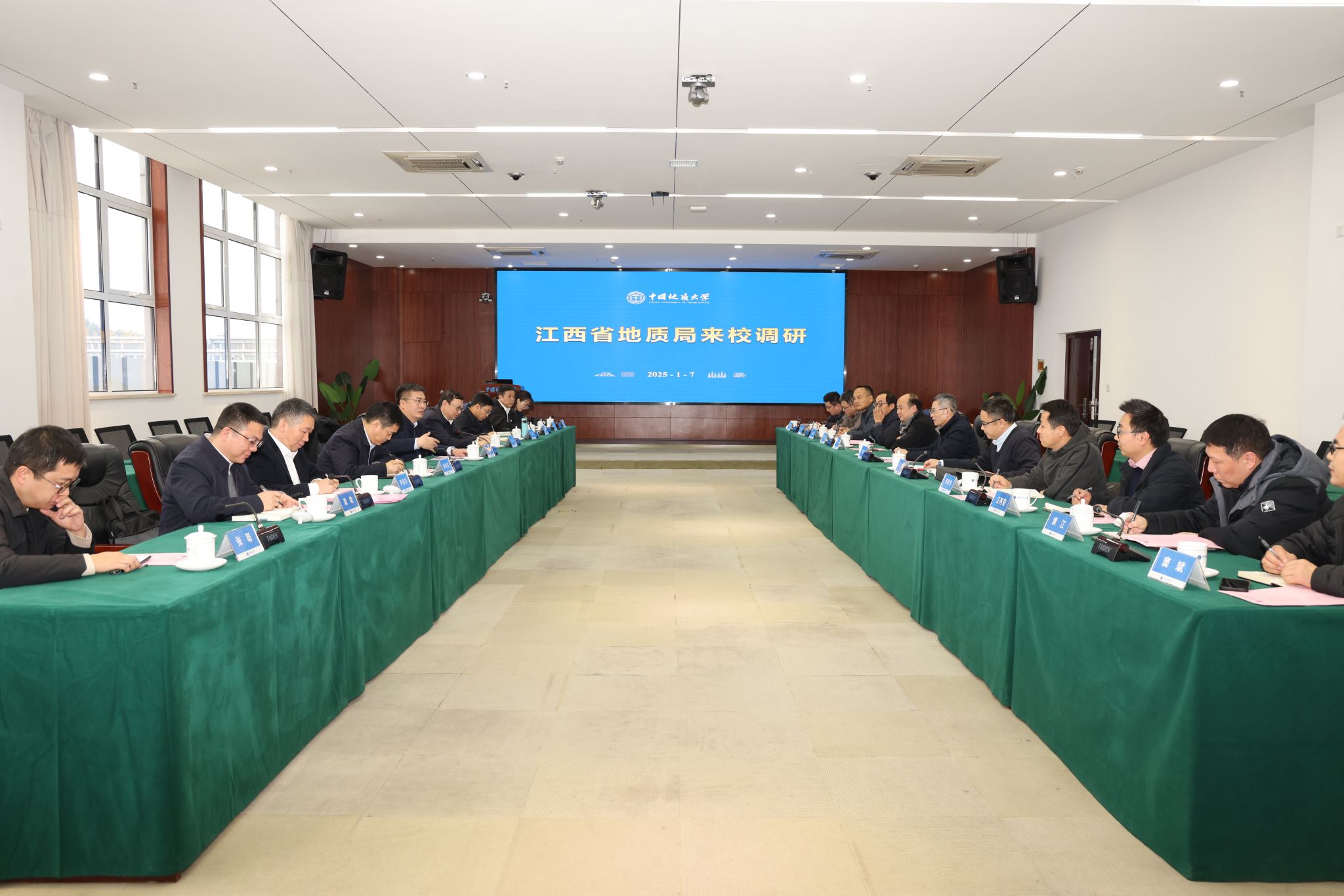 opta足球新闻网讯 (记者 孙彦钦)1月7日,江西省地质局一行来校调研,并就深化务实合作进行座谈交流。江西省自然资源厅党组成员、省地质局党组书记饶清华,江西省地质局副局长吴俊华,opta足球校长李建威、副校长王力哲,相关部门负责人参加座谈会。王力哲主持座谈会。