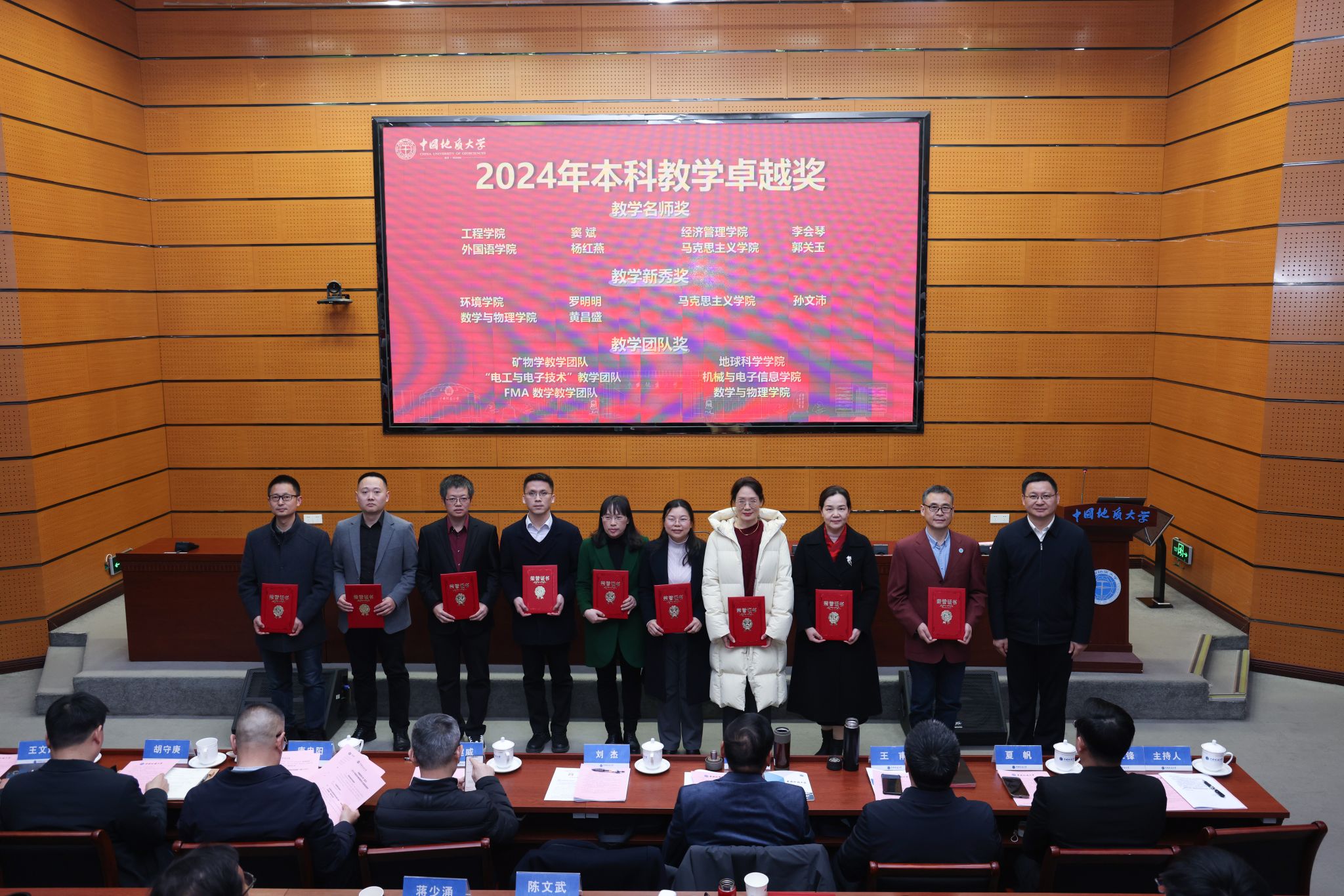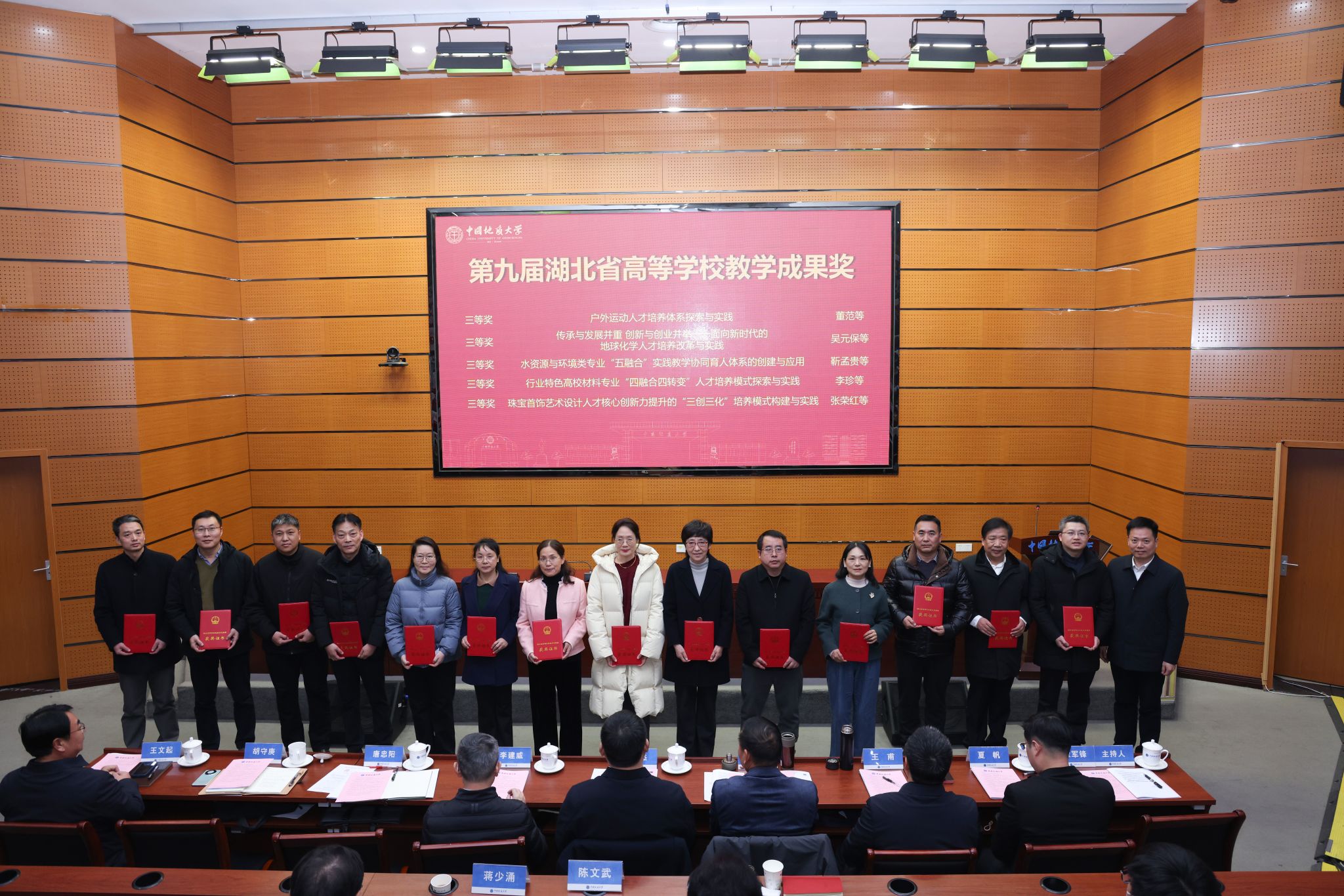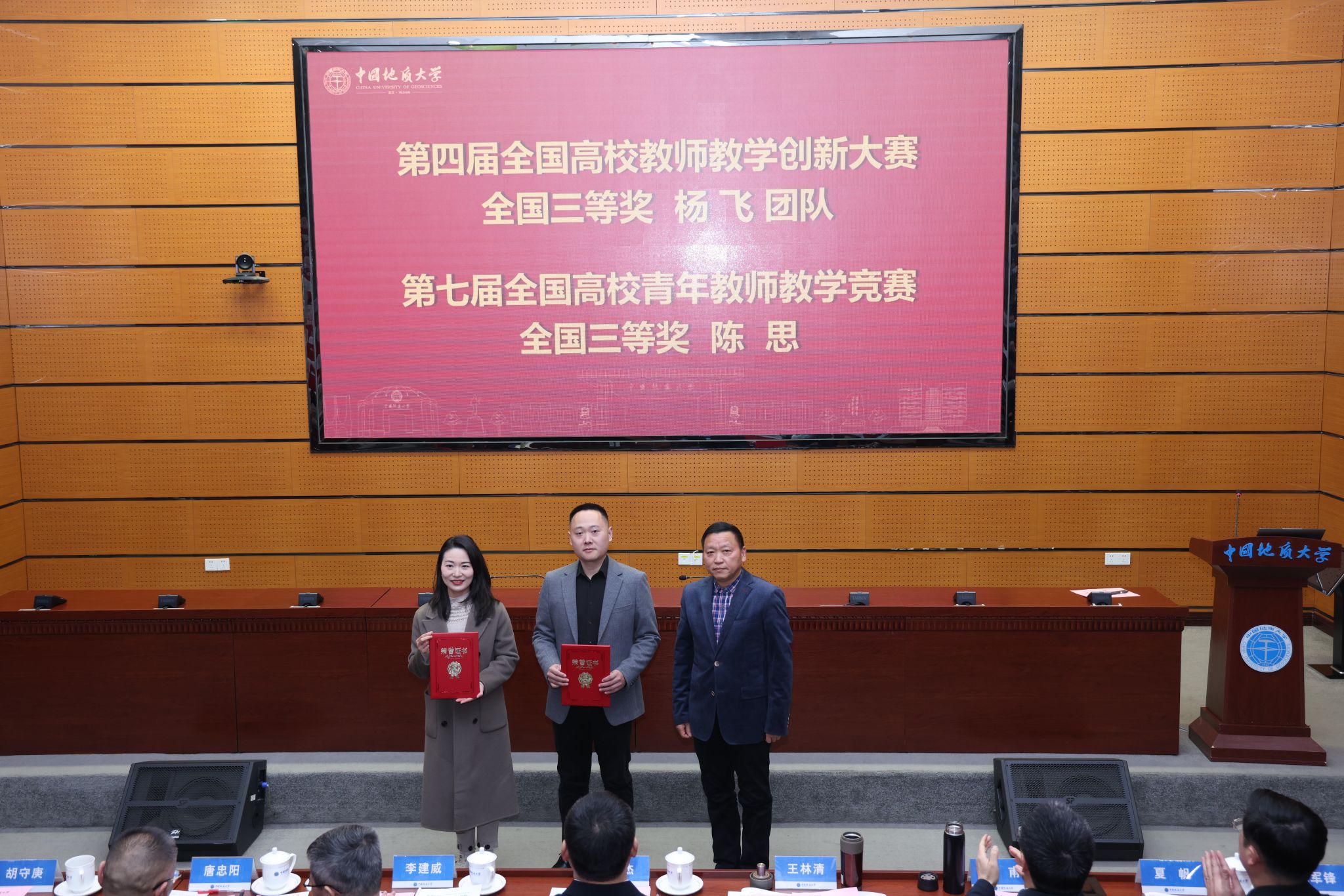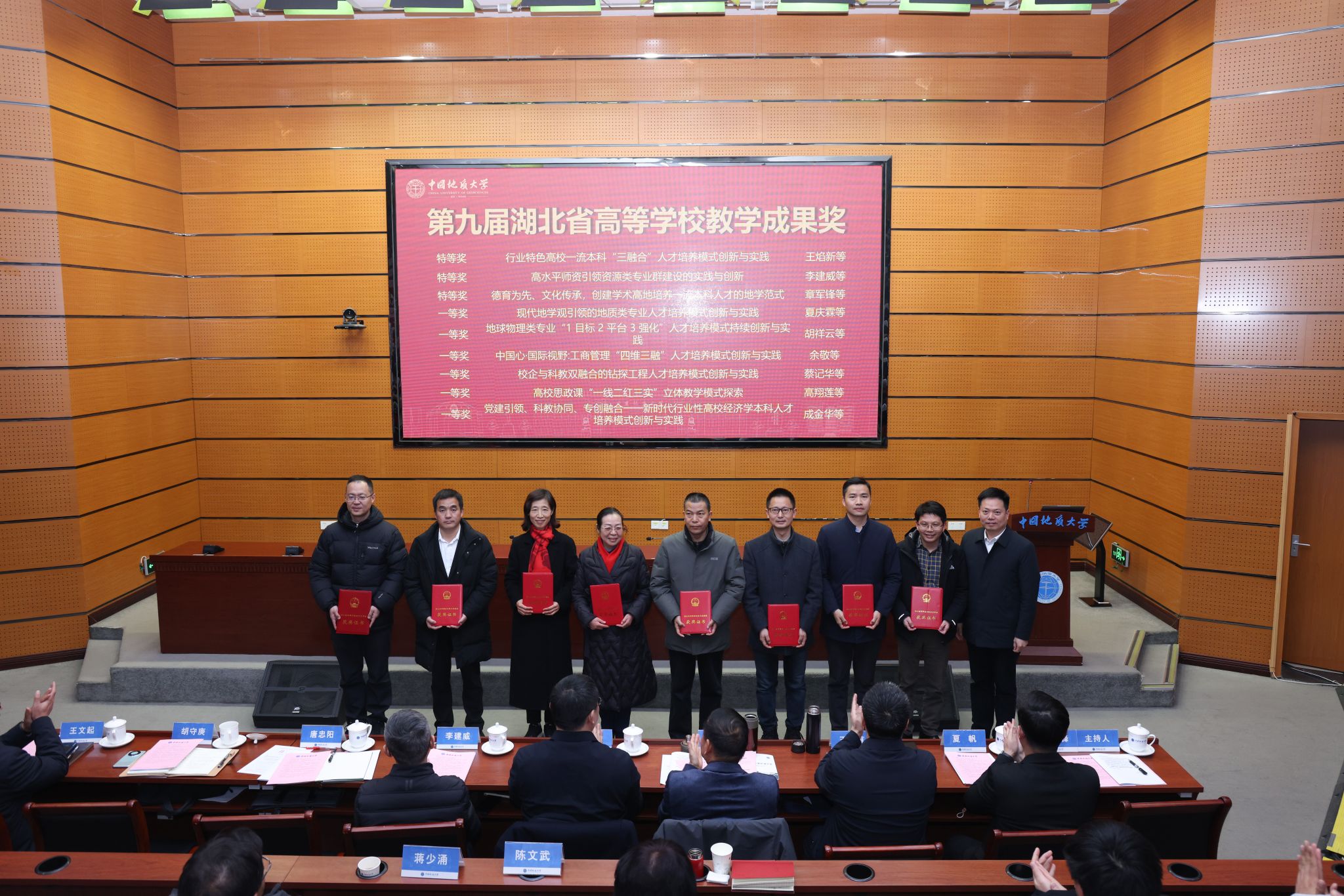 校领导分别为“国家级教学成果奖”获奖团队代表、“全国模范教师”“全国高校教师教学创新大赛”“全国高校青年教师教学竞赛”获奖者、“国家一流课程”负责人、“中国国际大学生创新大赛”获奖单位代表等各类教育教学奖项获奖团队和个人颁奖。