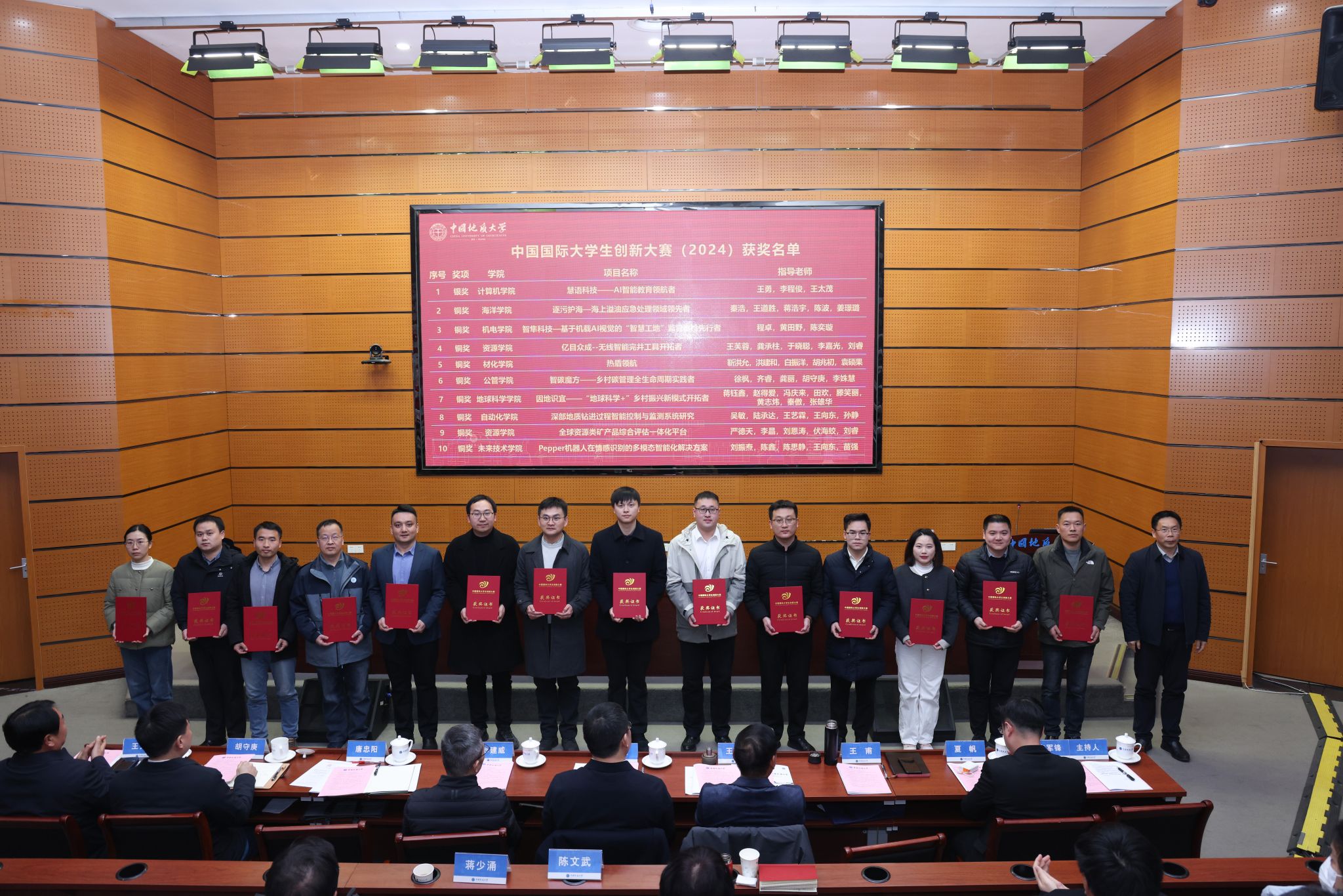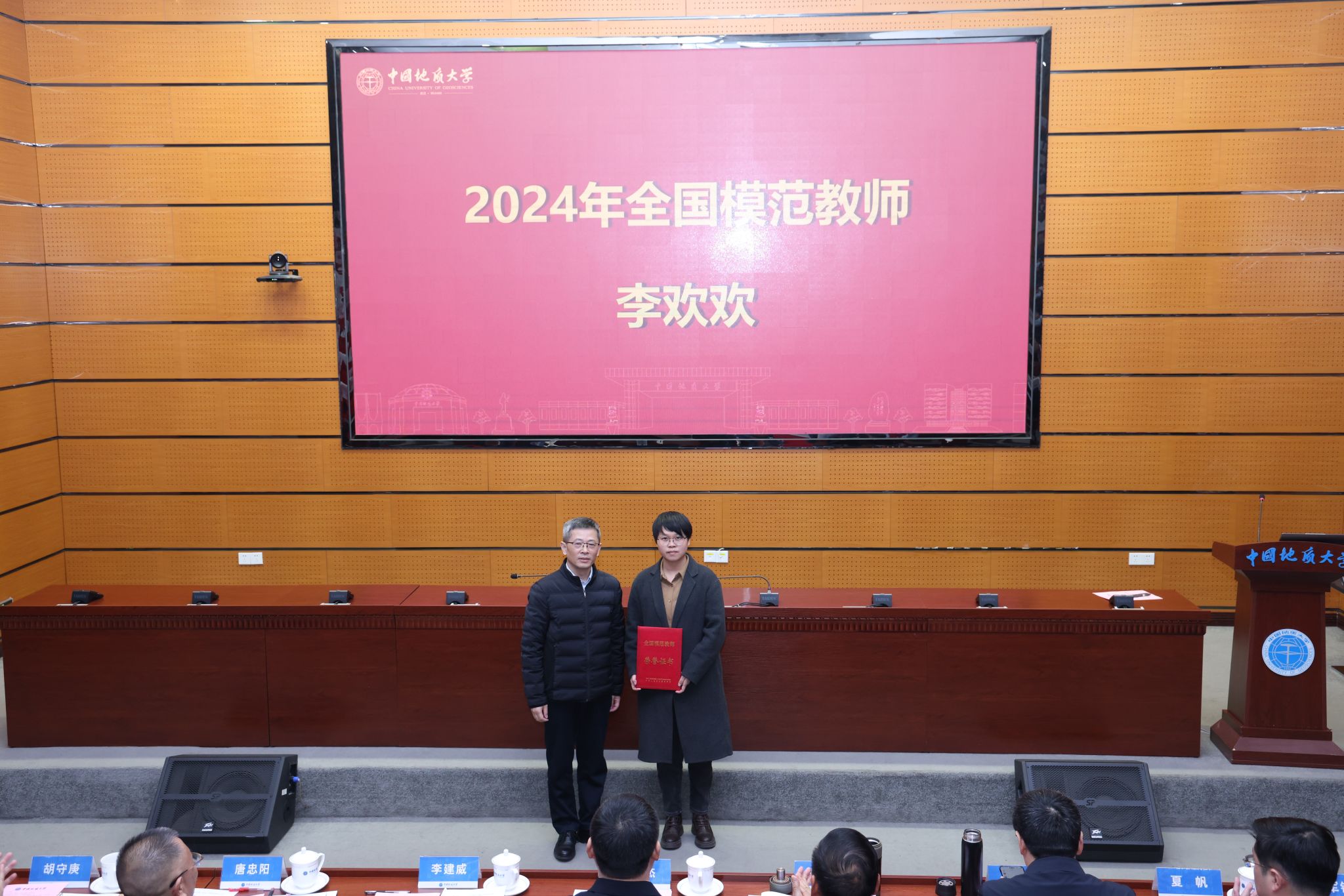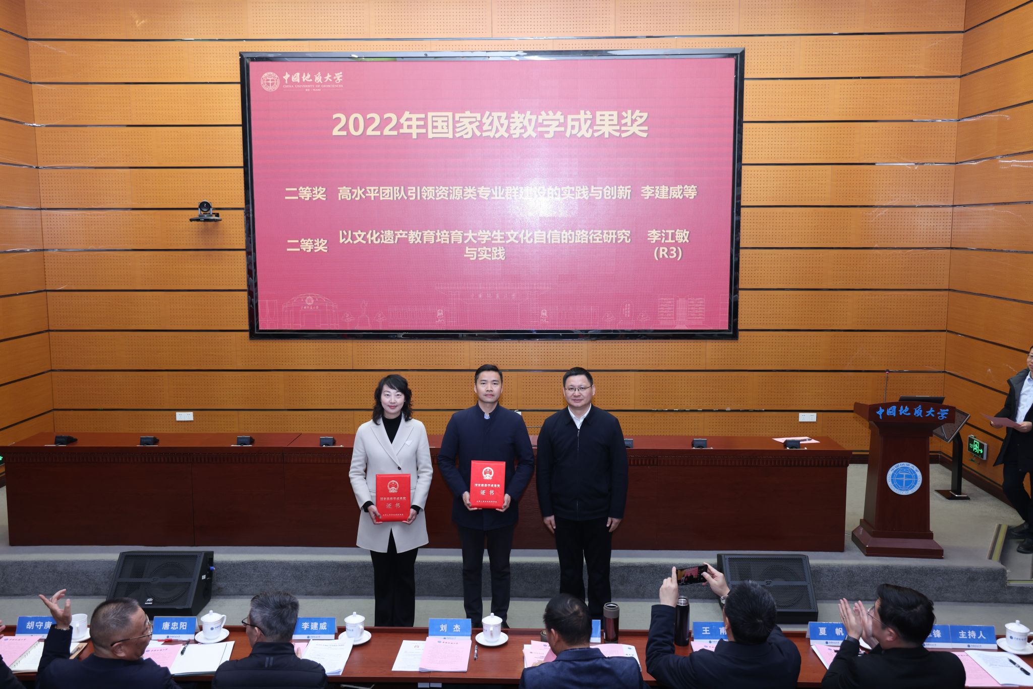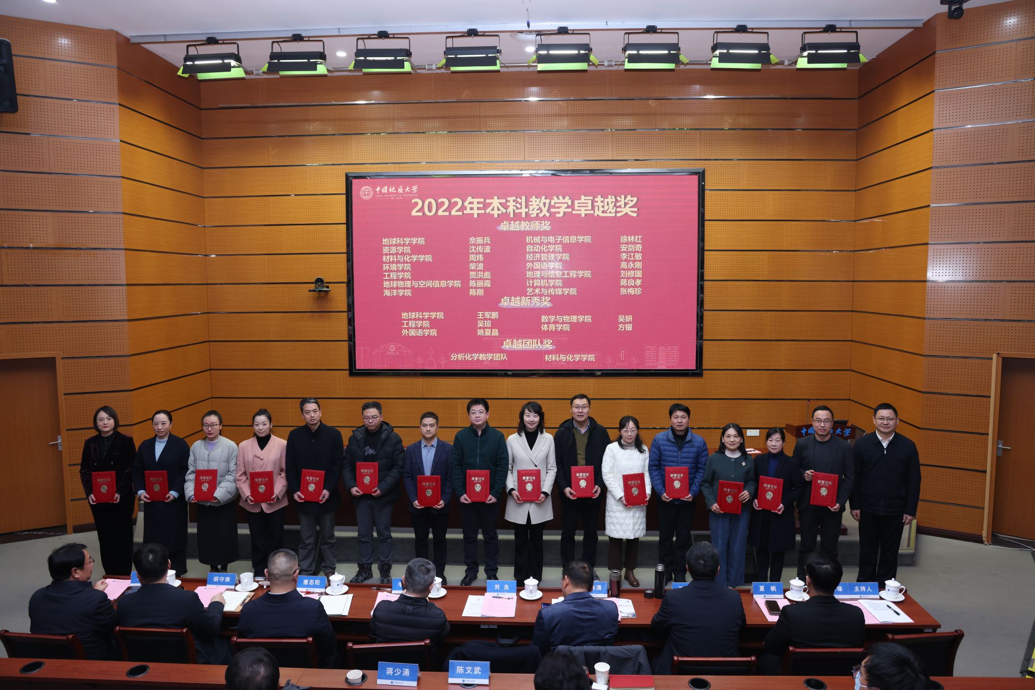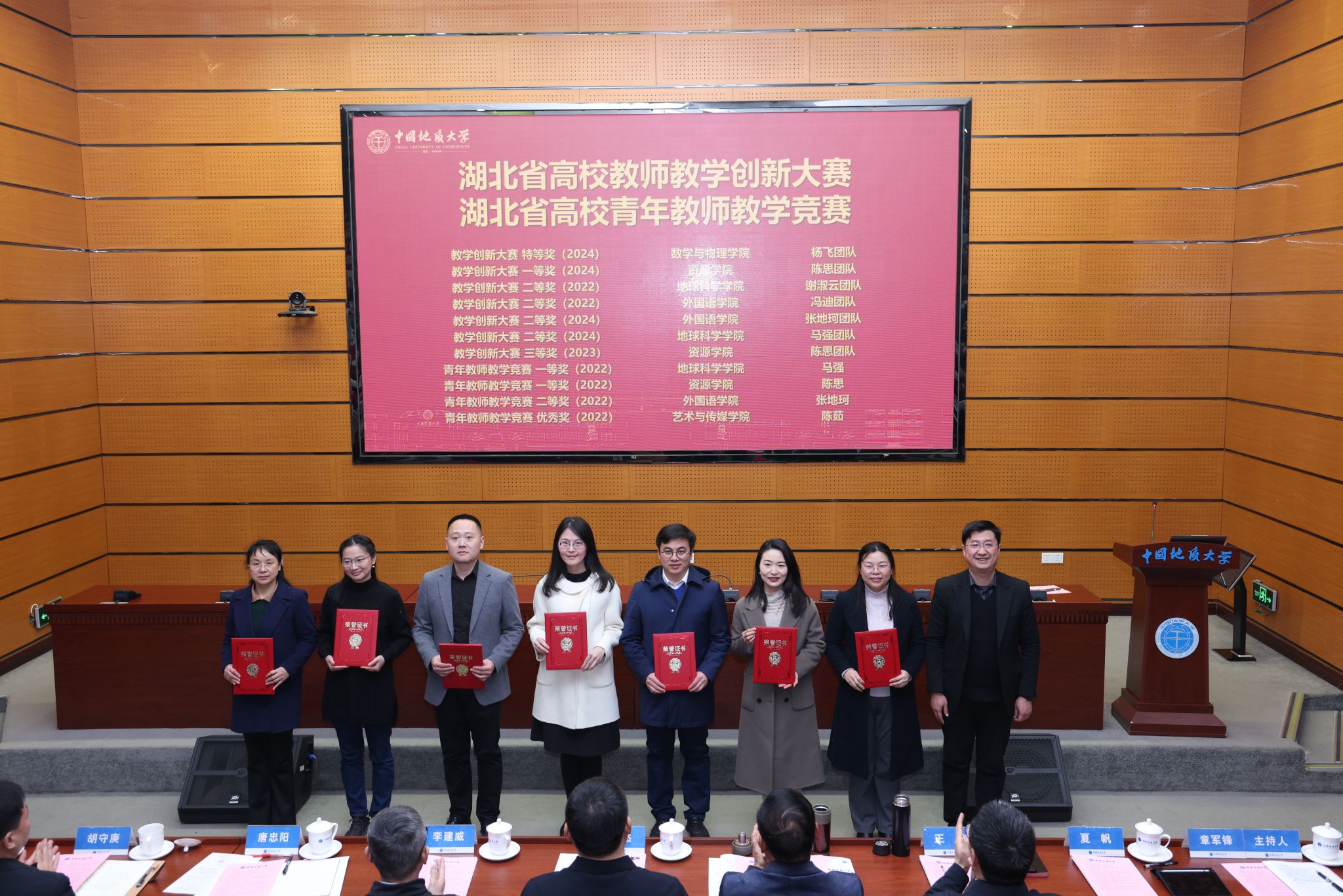 校领导分别为“国家级教学成果奖”获奖团队代表、“全国模范教师”“全国高校教师教学创新大赛”“全国高校青年教师教学竞赛”获奖者、“国家一流课程”负责人、“中国国际大学生创新大赛”获奖单位代表等各类教育教学奖项获奖团队和个人颁奖。