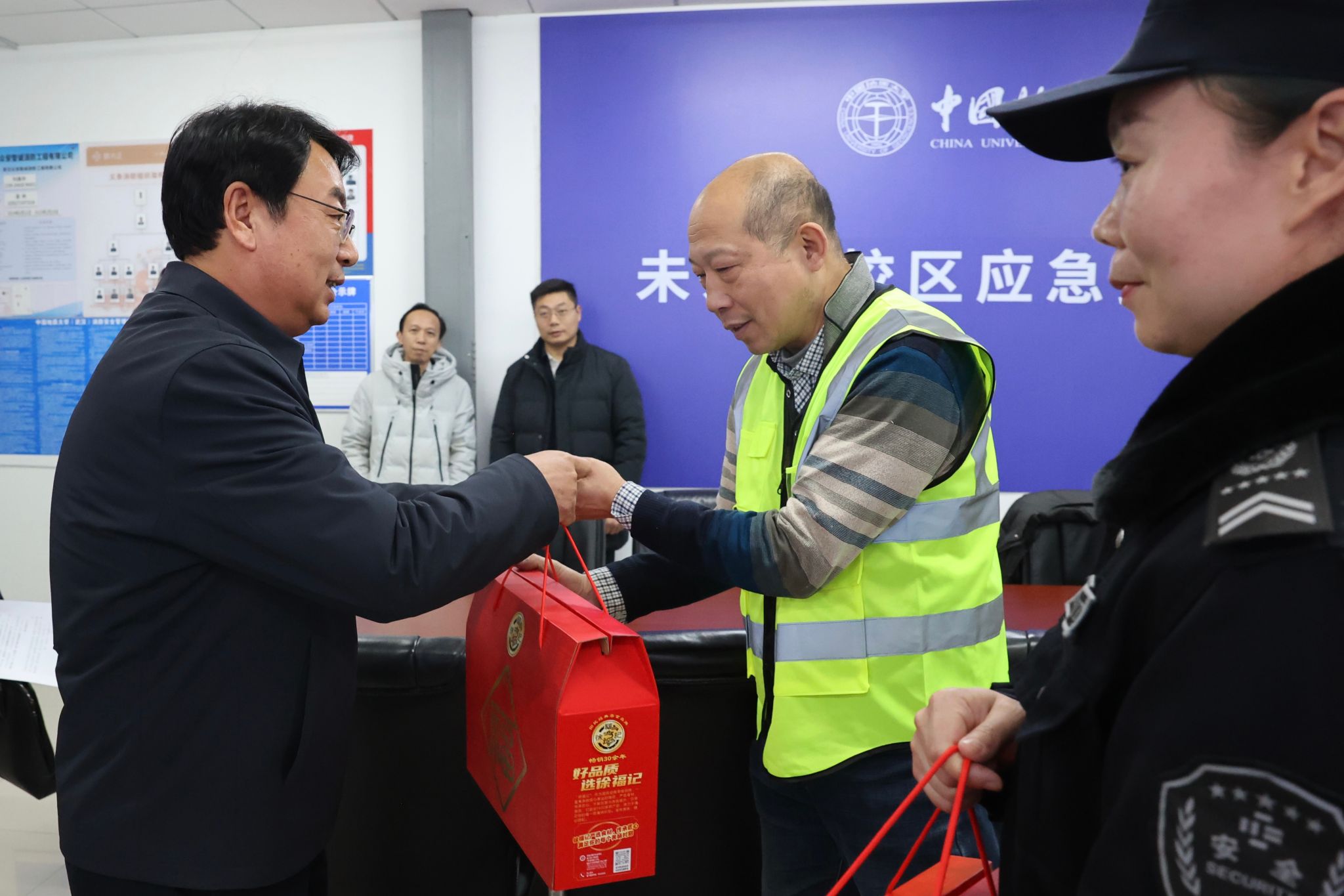 1月22日,王林清、王甫、王文起等校领导,分别在南望山校区和未来城校区、看望慰问了寒假坚守一线的教职工,代表学校送去新春的祝福,校工会为本次慰问提供了物资支持。