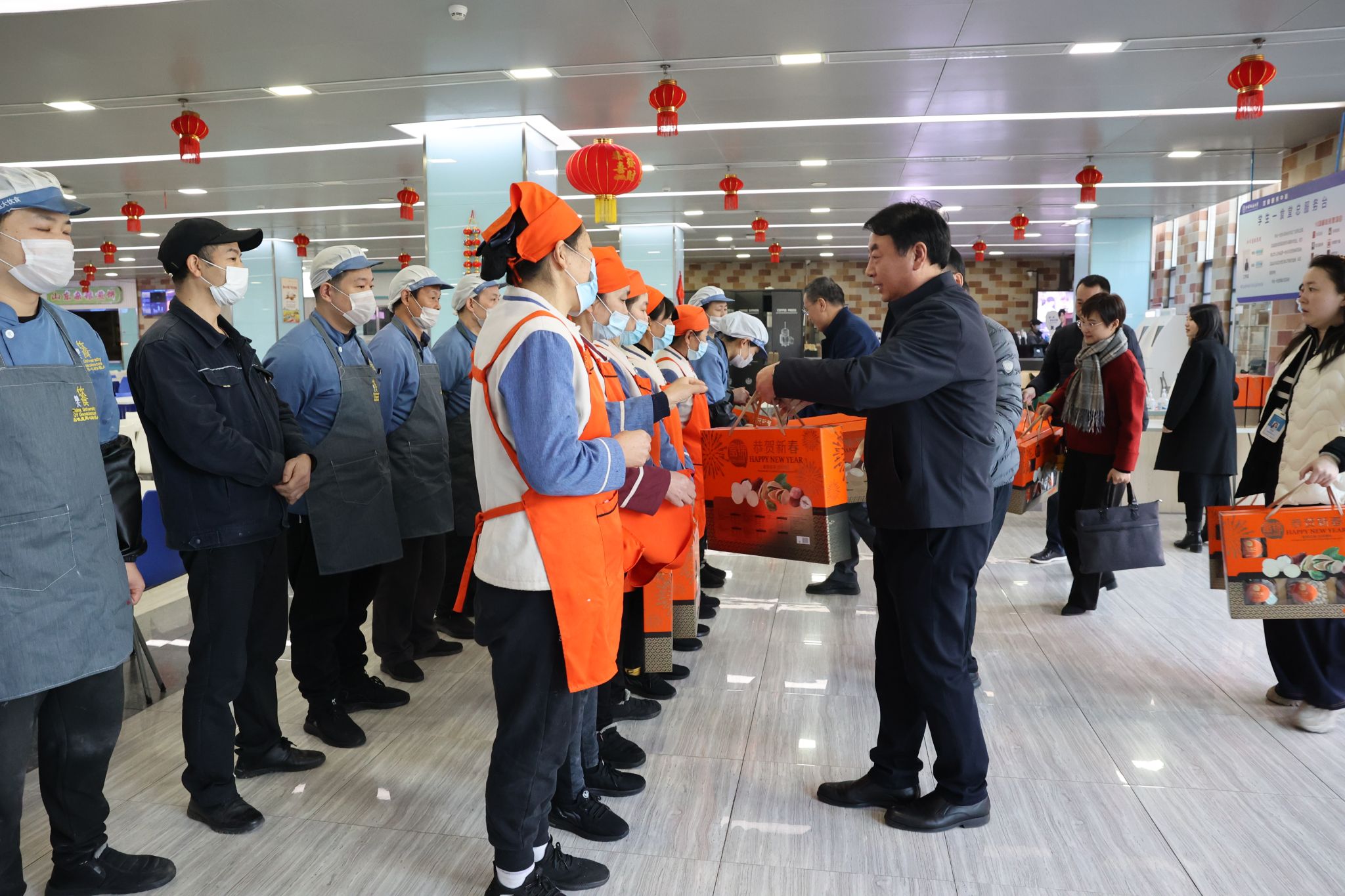 1月28日,王文起带队慰问留校学生和后勤在岗人员,并祝福大家新春快乐。