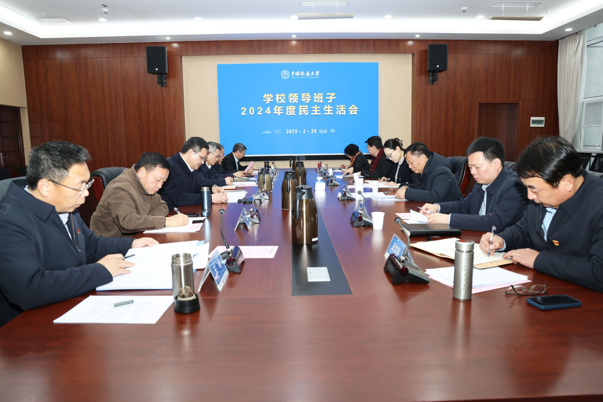 谢守成对民主生活会进行点评,认为学校党委高度重视此次民主生活会,紧紧围绕会议主题,精心制定工作方案,会前准备扎实充分,会上批评严肃认真,统一了思想、明确了方向,体现了严的标准、实的要求,是一次高质量的民主生活会。同时,严格对标中央关于开好此次民主生活会的要求,指出了存在的不足,并就会后整改落实提出三点要求:一是进一步深化理论武装,筑牢政治根基,把理论学习成果转化为干事创业的强大动力,在履职尽责中彰显忠诚本色;二是进一步严明纪律规矩,淬炼党性修养,持续巩固深化党纪学习教育成果,巩固拓展“全国党建工作示范高校”创建成果,在管党治校中强化从严基调,为学校健康发展提供坚强保障;三是进一步强化担当作为,锚定教育强国建设目标,在改革攻坚中提升发展质效,努力推动学校事业发展迈上新台阶,奋力推进地球科学领域国际知名研究型大学建设。