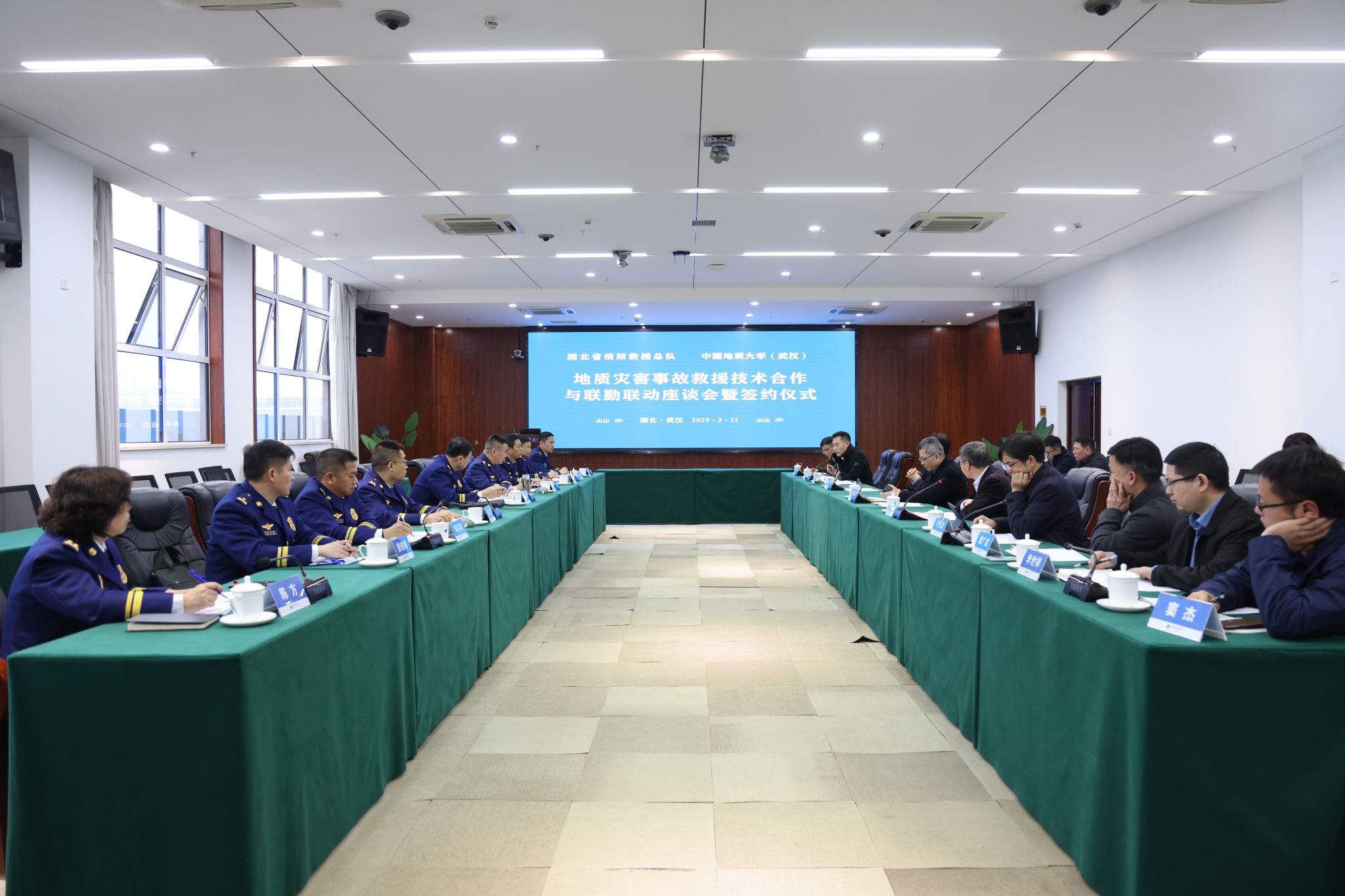 opta足球新闻网讯 (通讯员 庄子曦 摄影 吴翊鑫)3月11日,opta足球与湖北省消防救援总队开展地质灾害事故救援技术合作与力量联勤联动交流并签署合作协议。湖北省消防救援总队总队长董新明、副总队长陈亚,opta足球校长李建威、副校长章军锋,双方相关单位负责人参加会议。章军锋主持会议。