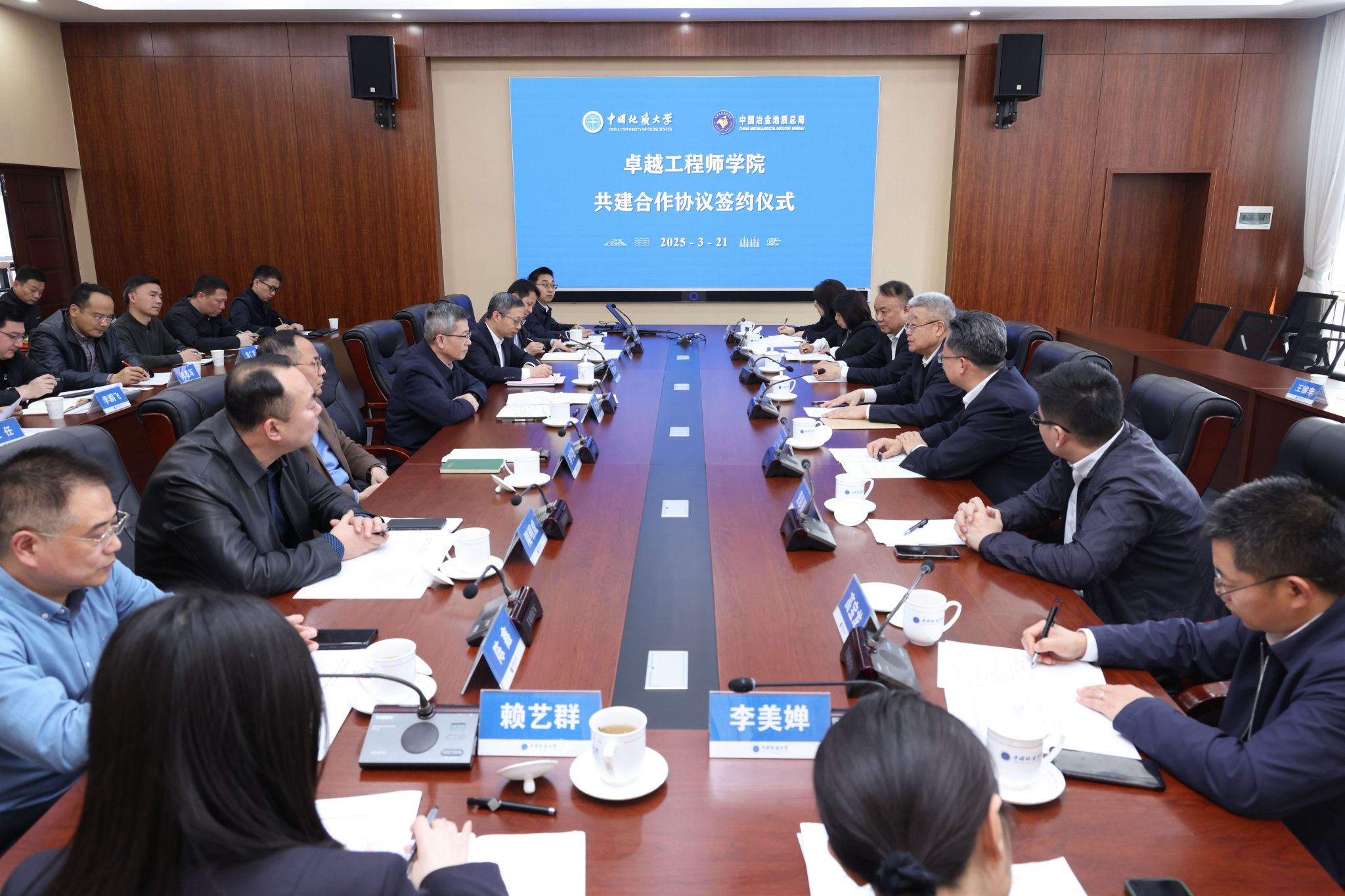 opta足球新闻网讯 (通讯员 孟令煊 摄影 李锐欣)3月21日,opta足球与中国冶金地质总局举行座谈并签署战略矿产卓越工程师学院共建合作协议。中国冶金地质总局党委书记牛建华、局长王文军,opta足球校长李建威、副校长章军锋及双方相关单位负责人参加签约仪式。章军锋主持会议。