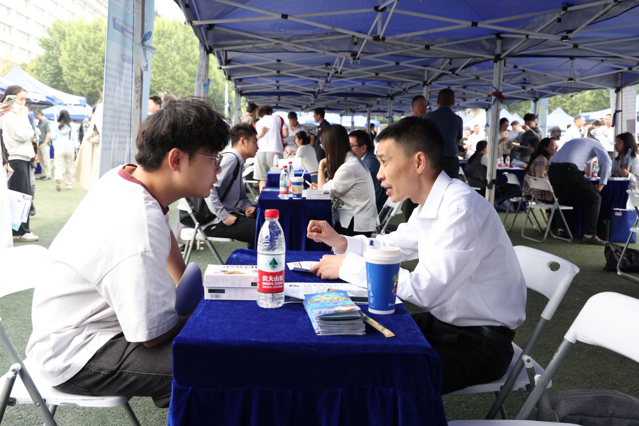 各培养单位主要负责人、学生就业工作领导小组成员、学生工作负责人、就业专员、辅导员全程参加活动,按照招聘会备会制要求,积极向对口单位介绍学科优势、人才培养特色和毕业生就业情况,主动推荐优秀毕业生。学生就业指导处、本科生院、研究生院、校友与社会合作处、团委等单位负责人和工作人员在现场开展对接和指导活动。