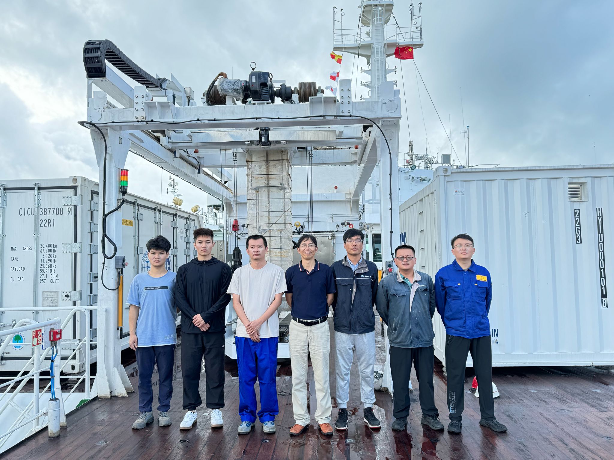 大洋钻探船岩心自动化传输系统海试人员合影(左二为胡晨,左四为宁伏龙)