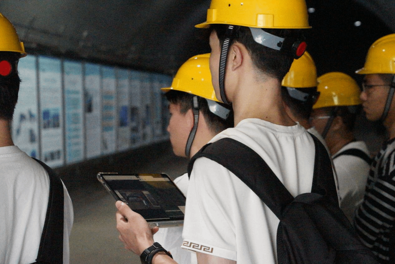 巴东野外综合试验场隧道群内建设了5G室内分布系统,通过网络的多DNN无感分流组网方案,构建了灵活、可靠的全连接双域专用网络。师生可“不换卡、不换号、无感切换”,随时随地、安全便捷地访问互联网和校园内网。现场学生通过移动端快速查看校内引擎平台上的巴东试验场数字孪生模型,在听受讲解的同时漫游、观察洞内的岩体、剖面和观测点。