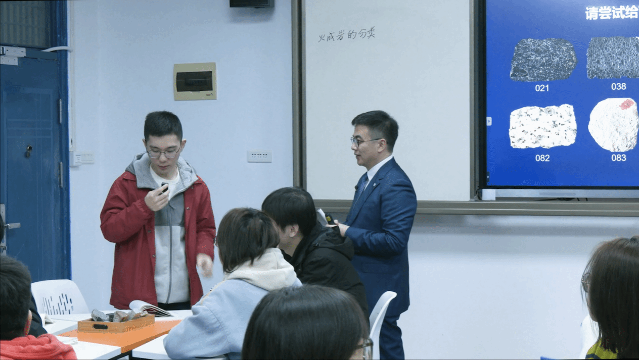 课堂上,师生借助智学opta足球的数字资源库,全方位、高精度观察岩石矿物标本,交流心得、共享讨论。“传统的岩矿观察需要学生跨越显微镜、标本盒、野外露头等多个尺度,现在,我们的智能平台在同一教学空间内呈现岩石标本的微观组成、手标本结构和露头构造,让学生在沉浸式学习中提升岩矿分析能力。”马强说道。