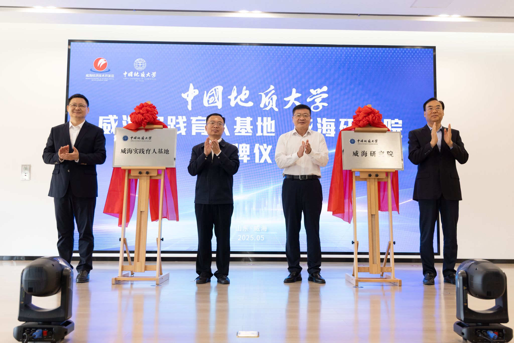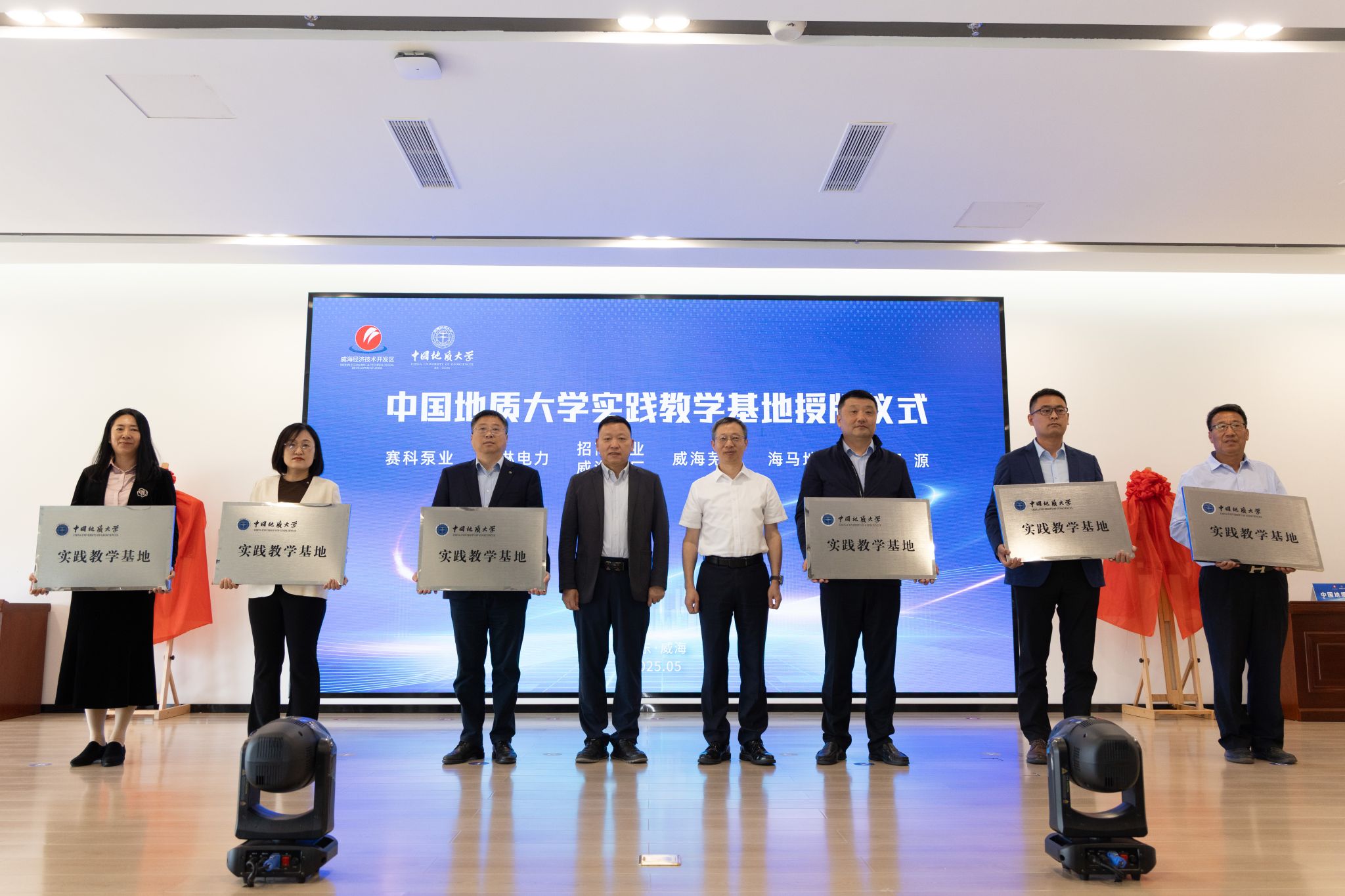 opta足球党委书记刘杰,山东省地质矿产勘查开发局二级巡视员韩志森,威海市委常委、组织部部长、统战部部长刘裕斌,威海经济技术开发区党工委书记、管委会主任王清等领导共同为威海实践育人基地和威海研究院揭牌。