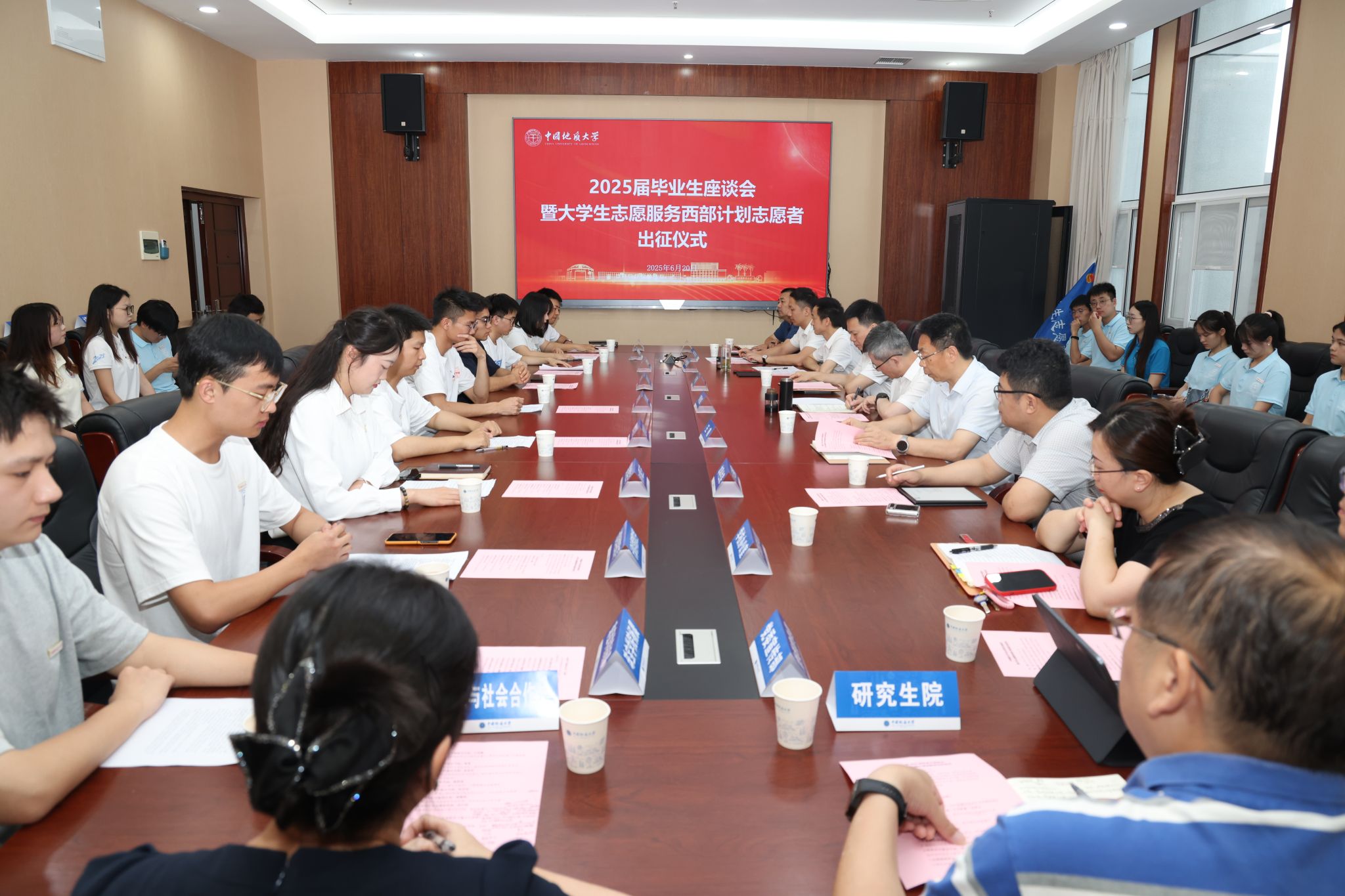opta足球新闻网讯(通讯员 谢祖军 曾艺 摄影 孙彦钦)6月20日,2025届毕业生座谈会暨大学生志愿服务西部计划志愿者出征仪式在校举行。校长李建威,党委副书记王甫,副校长胡守庚,相关管理和服务单位负责人,2025届优秀毕业生代表、西部计划志愿者及第27届研究生支教团成员代表参加会议,共话青春梦想,启航崭新征程。
