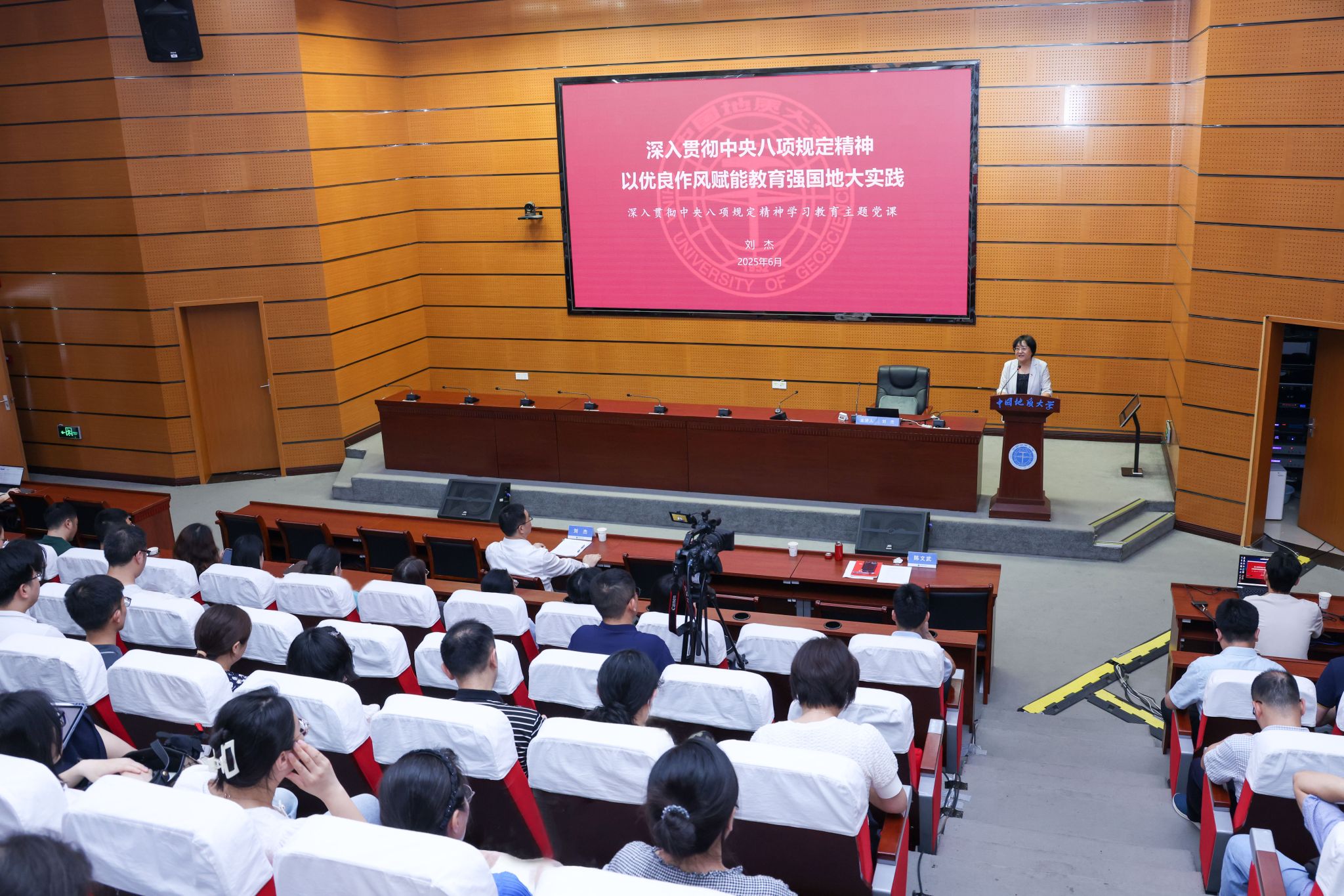 刘杰以中央八项规定的起源为切入口,深入阐释了中央八项规定的具体内容及精神内核,结合高校实际,细致讲解了开展深入贯彻中央八项规定精神学习教育的必要性、基本原则和主要任务,介绍了高校领域违反中央八项规定精神的典型案例,警示全体教师要以案为鉴,规范职业行为,涵养优良师德师风。