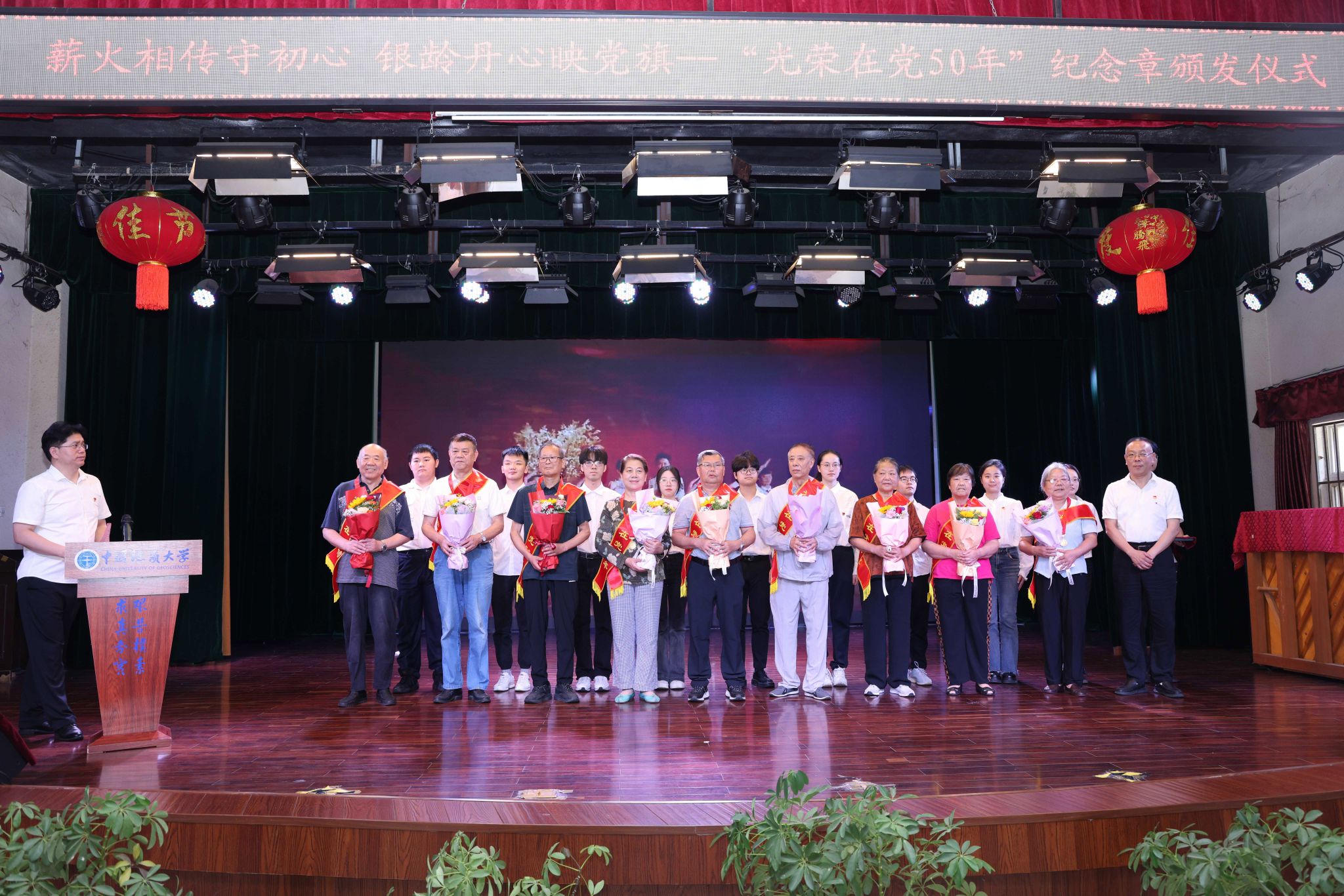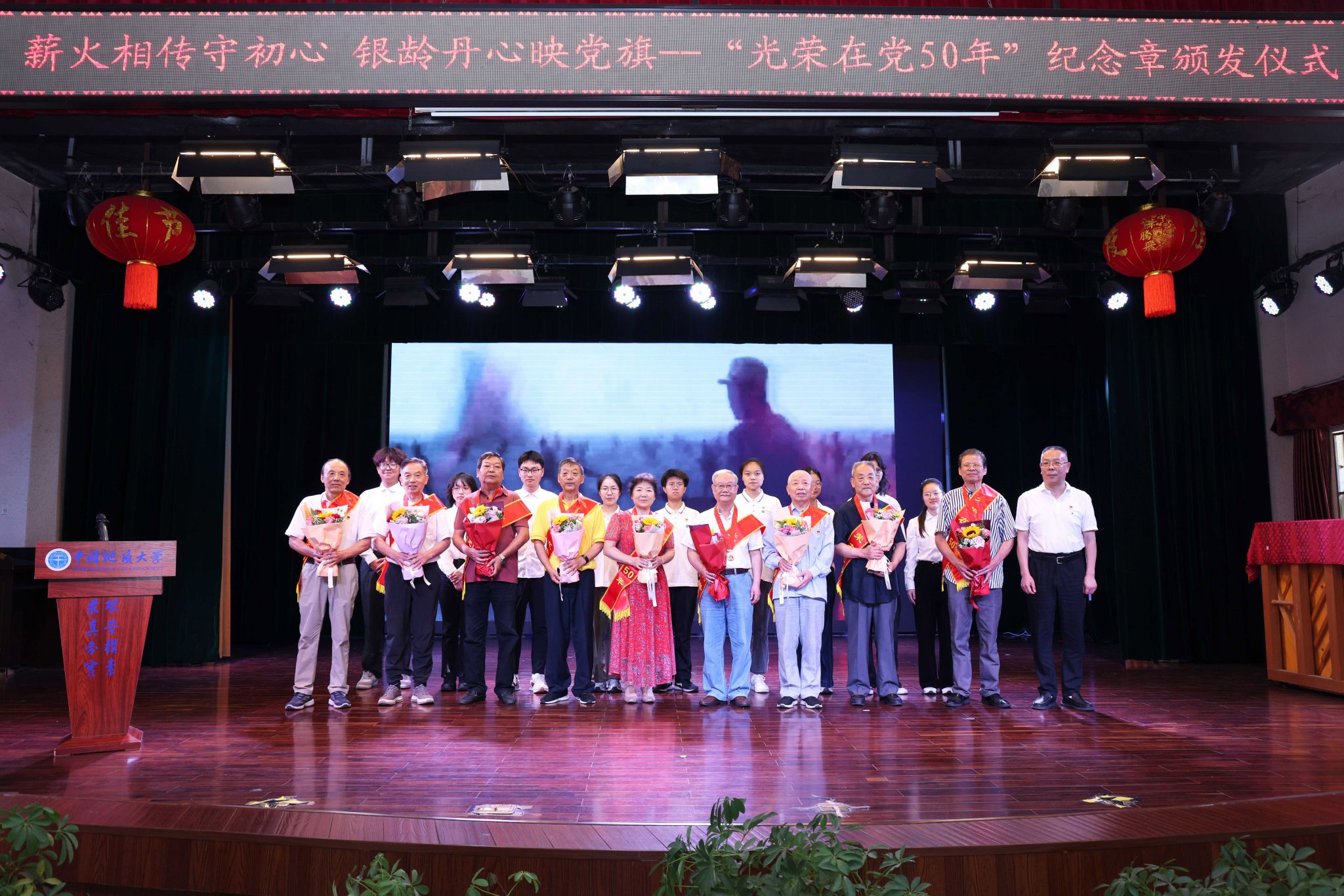 opta足球新闻网讯 (记者 孙彦钦 学生记者 杨小樱 通讯员 叶青)薪火相传守初心,银龄丹心映党旗。7月1日,“光荣在党50年”纪念章颁发仪式在校举行。校党委副书记唐忠阳,党委常委、组织部部长陈文武,相关职能部门负责人、老党员代表、离退休党支部书记、离退休工作党委委员、老协委员、关工委老同志委员、青年学生党员等百余人齐聚一堂,共同见证这一庄严时刻。