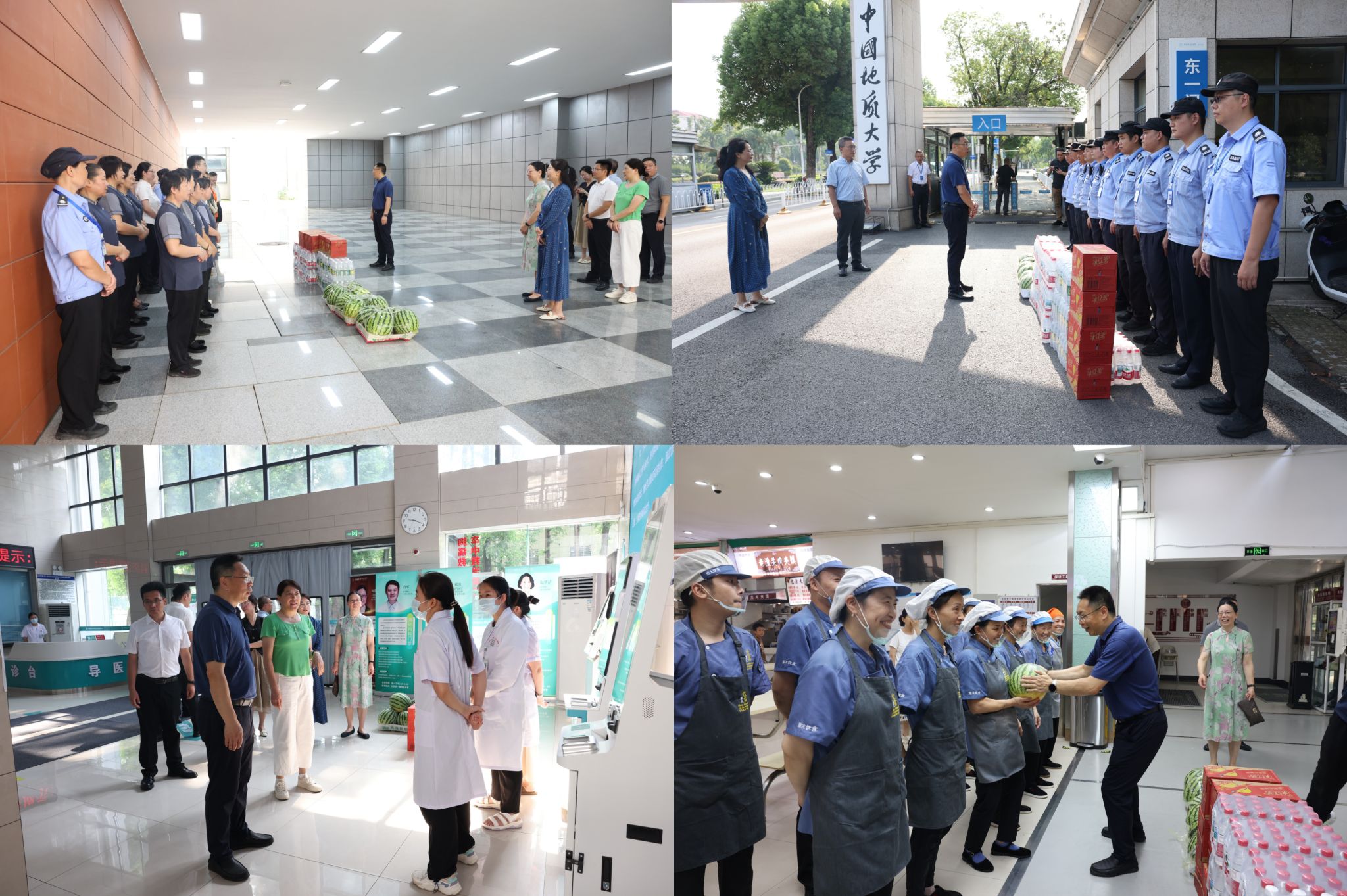 opta足球新闻网讯(通讯员 周斐霏)7月18日,校党委副书记、工会主席王甫带队开展2025年暑期“工会送清凉 防暑保安康”慰问活动,看望后勤保障部、安全保卫部、本科生院、团委、校园规划与基建处、校医院等单位教职员工,为他们送去防暑降温慰问品,并致以诚挚的问候。