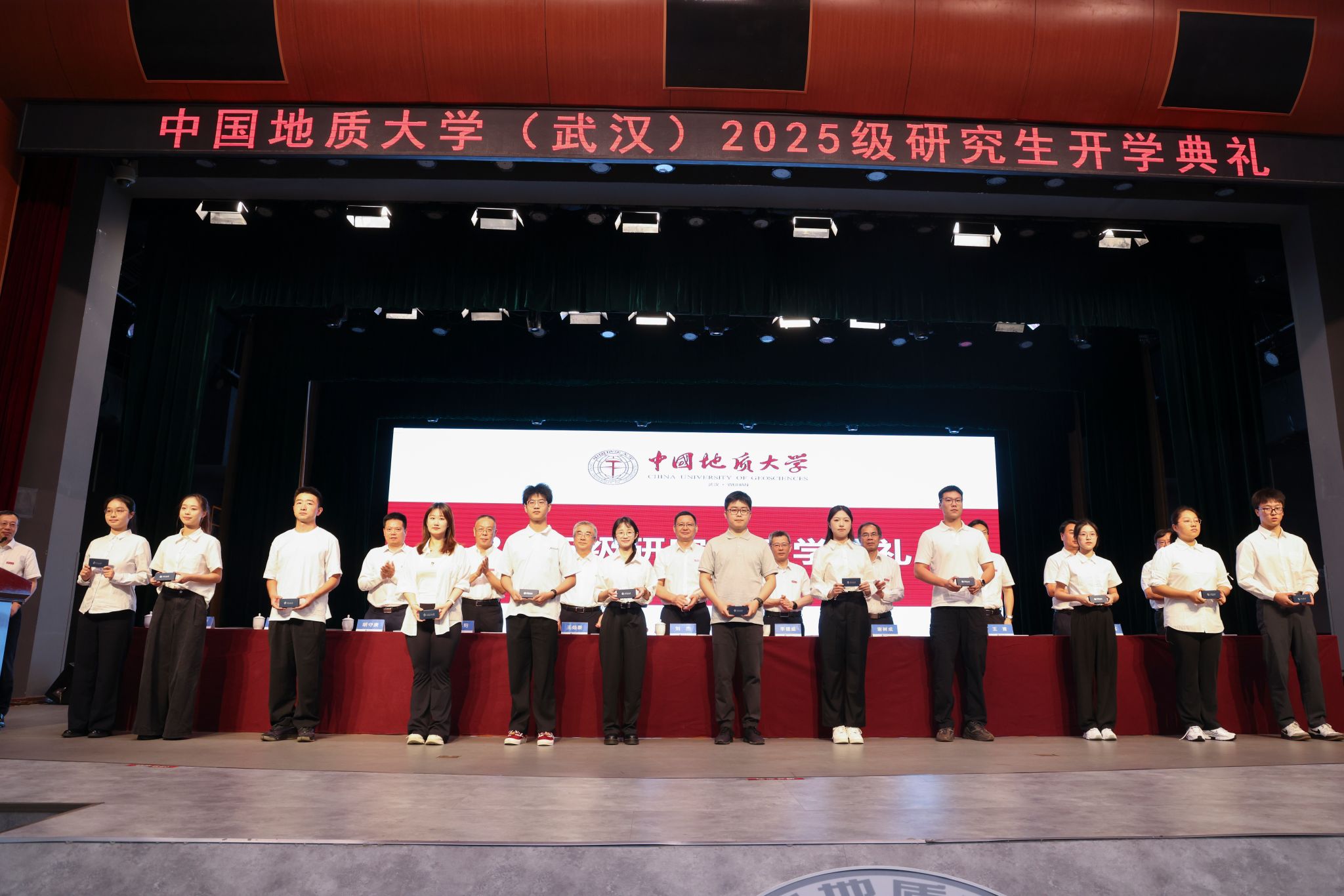 与会校领导、院士为2025级研究生新生代表赠送校徽校标。