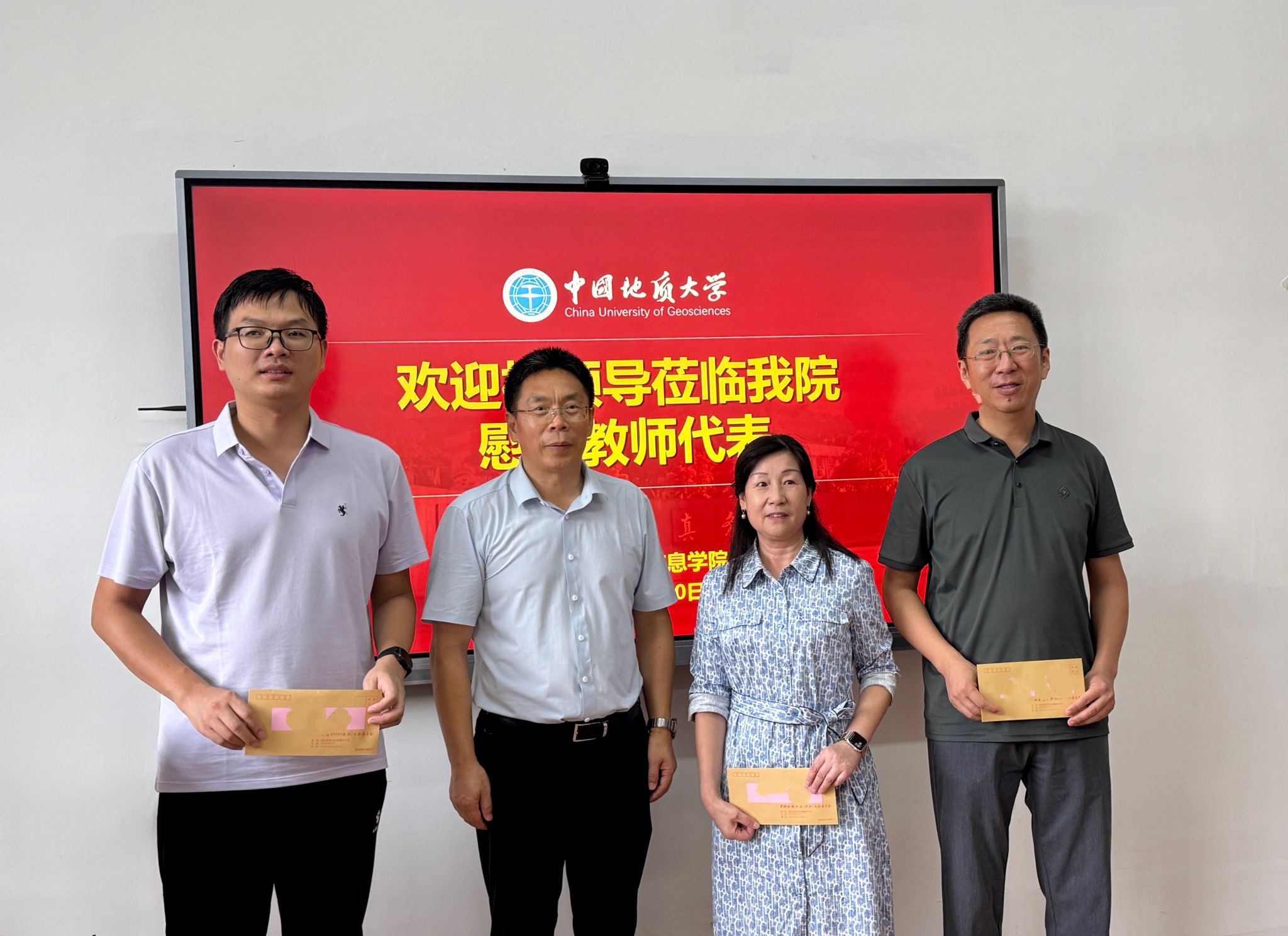 王林清一行走访慰问材料与化学学院娄筱叮、杨丽霞,环境学院王红梅,地理与信息工程学院王伦澈、杨欢、杨雪、熊程,计算机学院张洪艳,地质过程与成矿预测全国重点实验室陈国雄,地质微生物与环境全国重点实验室孙福宁。