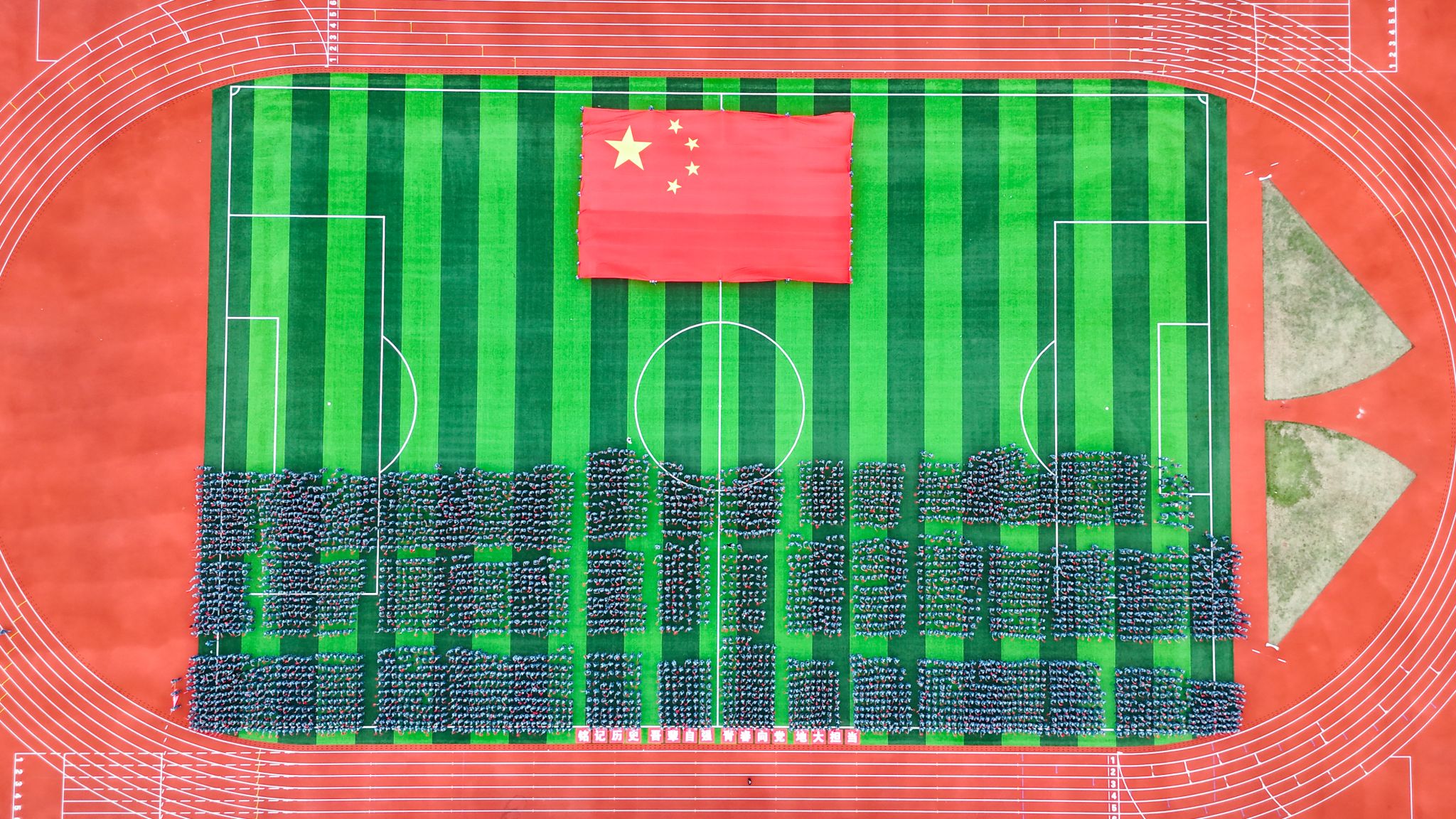 军体拳方阵由800名男生组成。他们的动作行云流水,刚劲有力,展现昂扬向上的精神风貌。
