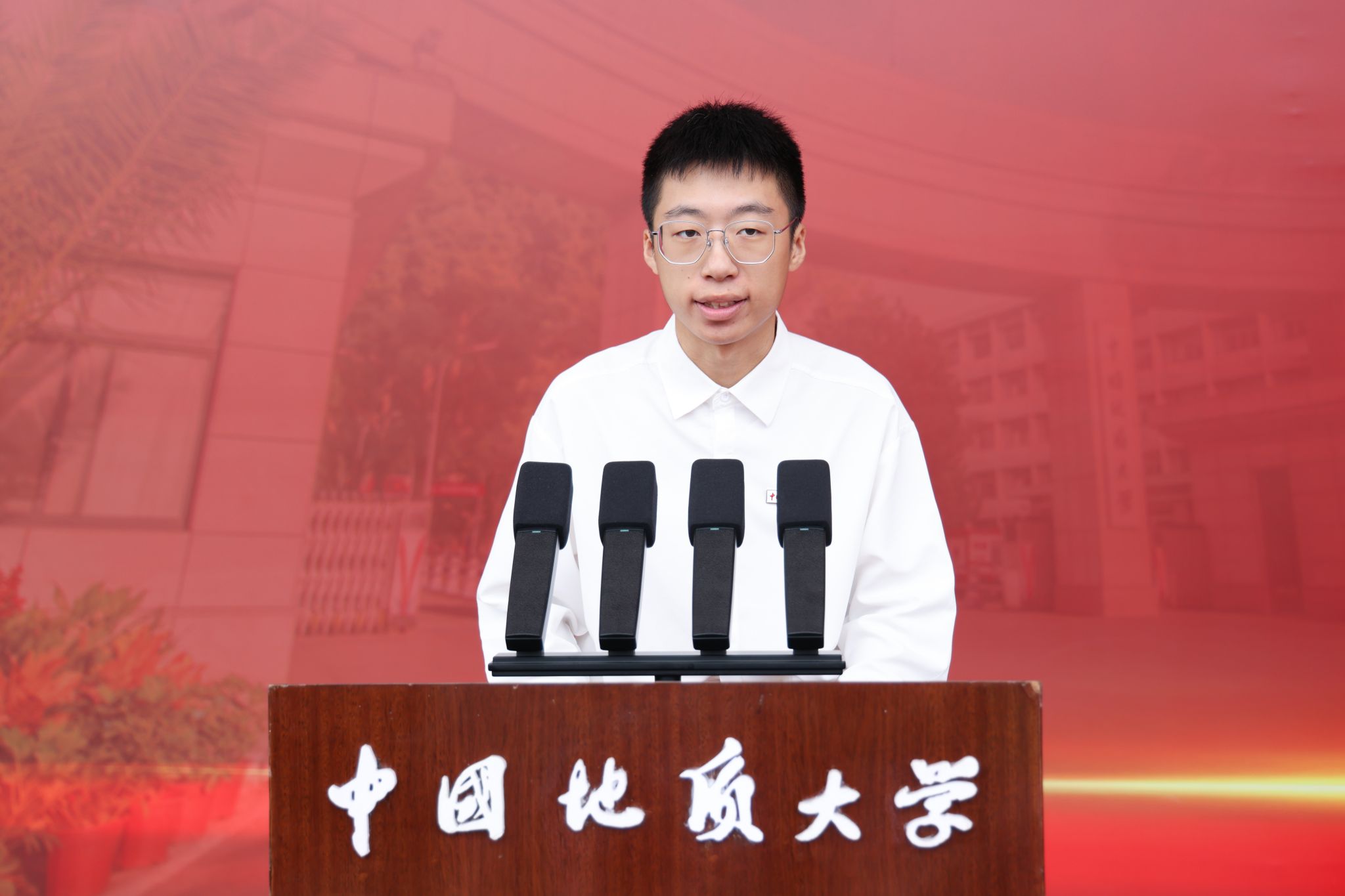 新生代表、资源学院2025级本科生李佳润发言,她说,地质报国不是一句空洞的口号,需要我们用脚步去丈量,用实践去书写。她期待不久的将来,真正成长为“艰苦朴素、求真务实”的opta足球人,去“上天、入地、下海、登极”,扛起新时代地质人建设“美丽中国 宜居地球”的时代使命。