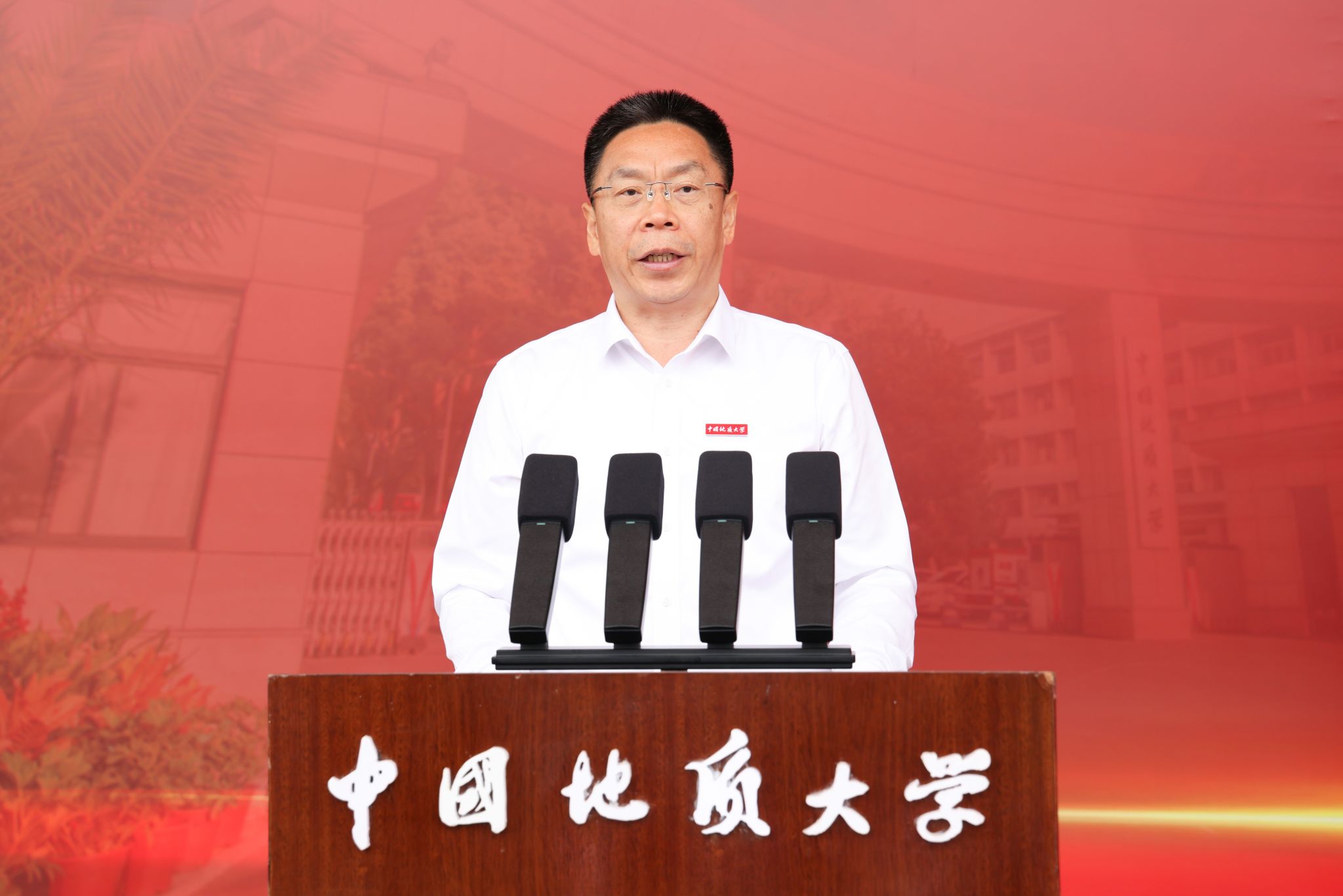 校长李建威作了题为《矢志报国向未来》的讲话。他说,建校73年来,学校为党育人为国育才的初心不改,地质报国科技强国的使命担当不改,矢志成为地球科学领域世界一流大学的追求不改。学校的奋斗历程和取得的辉煌办学成就,是矢志报国的生动体现,是熔铸于校训精神、南迁办学精神、攀登精神、摇篮精神的价值追求,是几代opta足球人赤诚报国的精神底色。