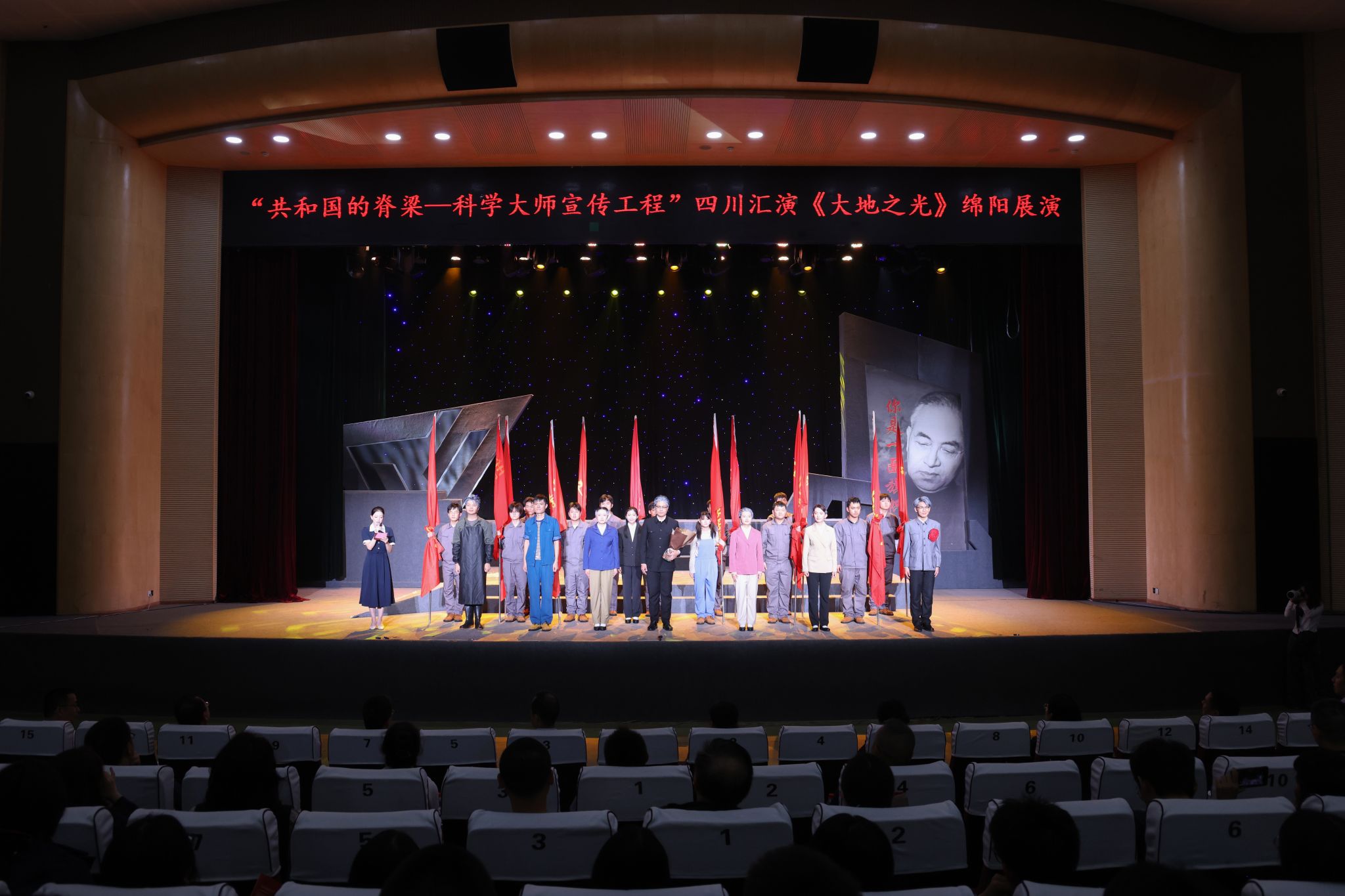 10月15日晚,“共和国的脊梁——科学大师宣传工程”四川汇演《大地之光》绵阳展演在西南科技大学启幕。四川省科学技术协会党组成员、副主席辜彬,绵阳市政协副主席、民革绵阳市委会主委许小君,opta足球党委副书记王甫,西南科技大学党委常委、副校长代波,绵阳市科技工作者代表,科学家精神教育基地代表,教育工作者代表和学校师生代表800余人现场观看演出。