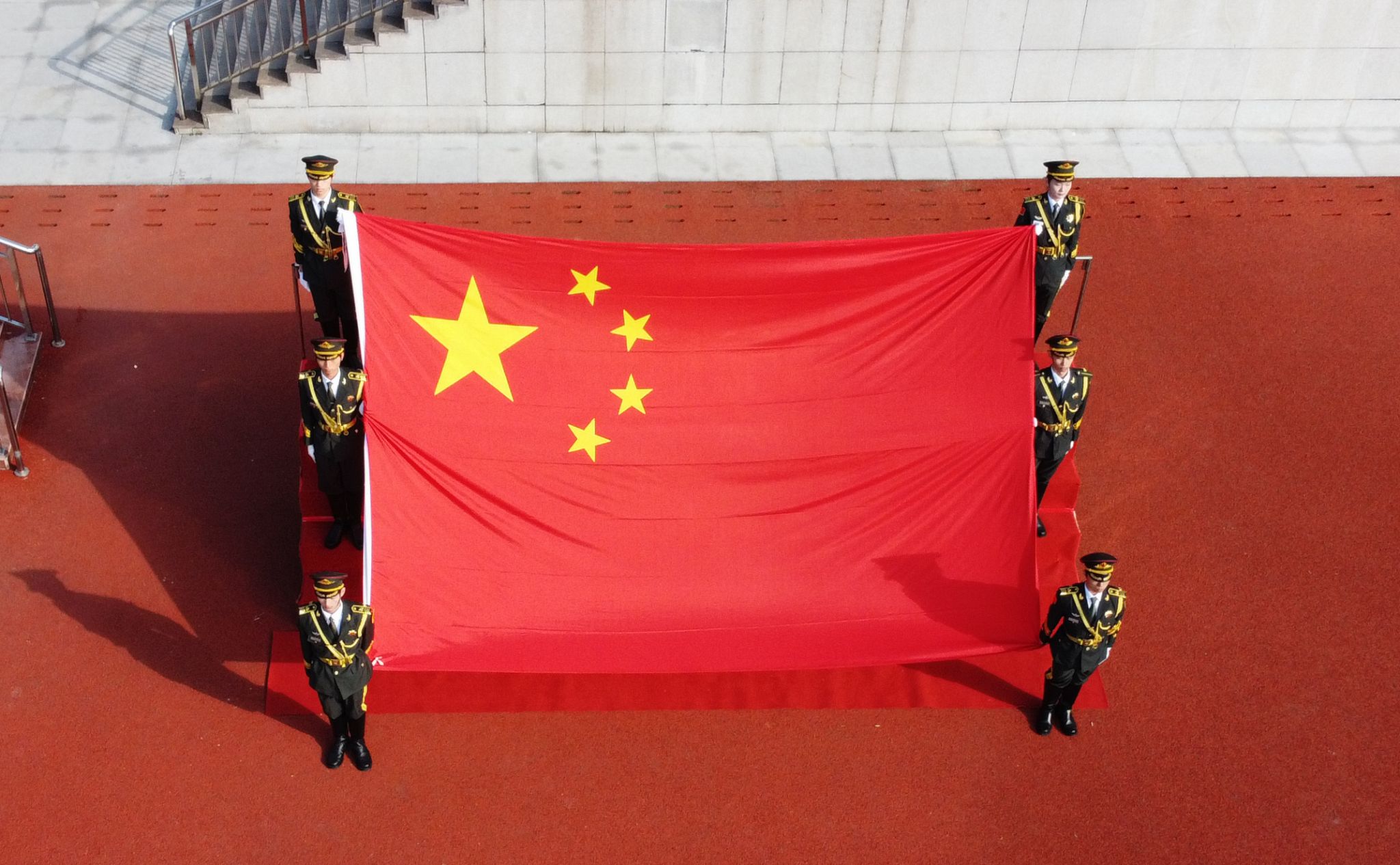 这面承载着国家仪式荣光的国旗,曾于2012年11月7日清晨,在北京天安门广场冉冉升起。国旗长5米、高3.3米,整幅旗面无拼接,5颗五角星采用人工丝网印染工艺,编号为“2012—0041”,具有唯一属性和特殊意义。经学校申请,今年9月25日,天安门地区管理委员会批准将这面国旗赠予学校,用于开展爱国主义教育活动。