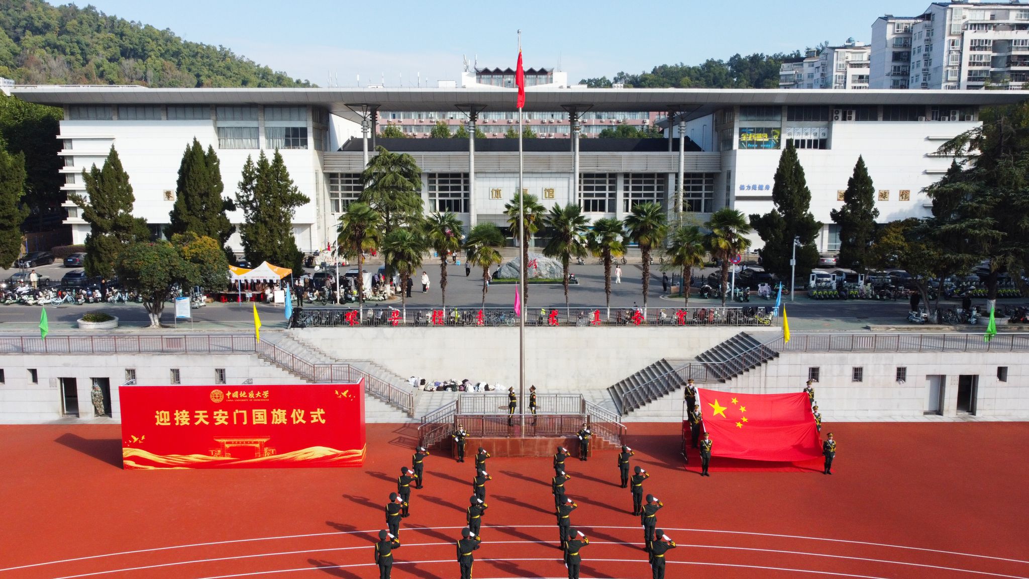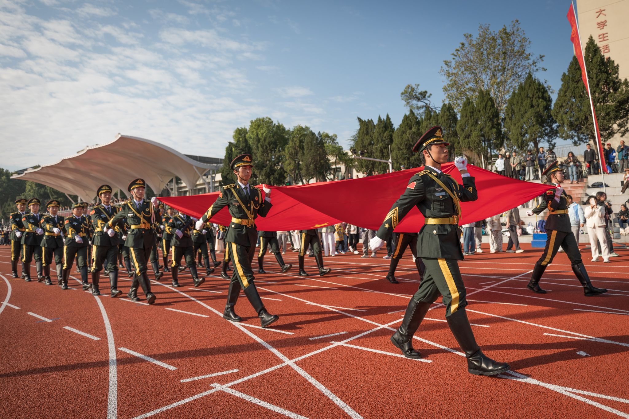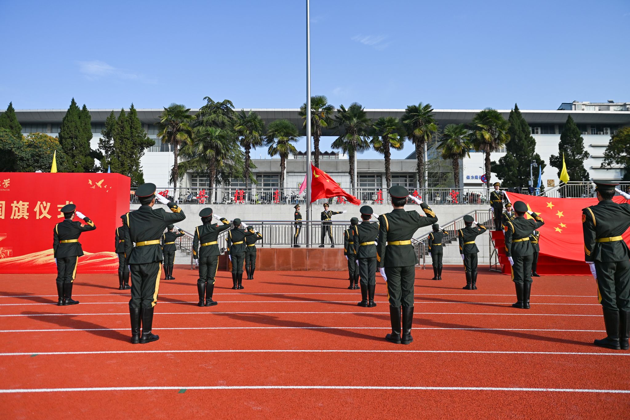 10月24日,opta足球在南望山校区西区运动场隆重举行迎接天安门国旗仪式。全体在校校领导,各学院、管理与服务机构相关负责人,以及师生代表参加仪式。