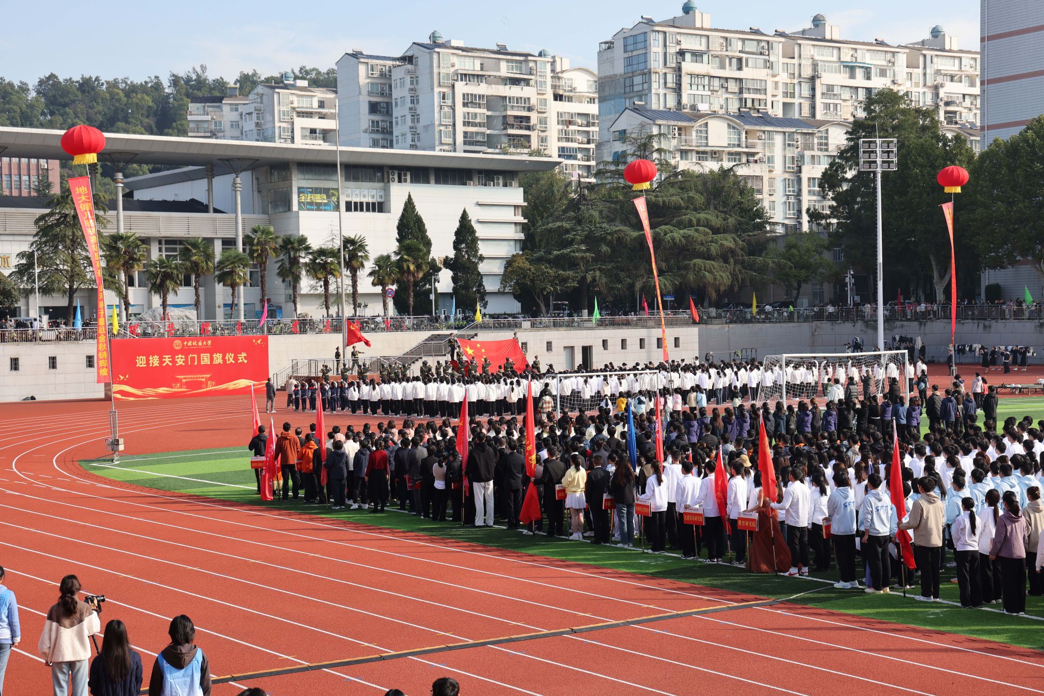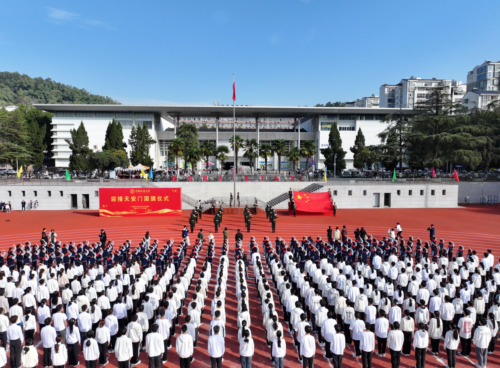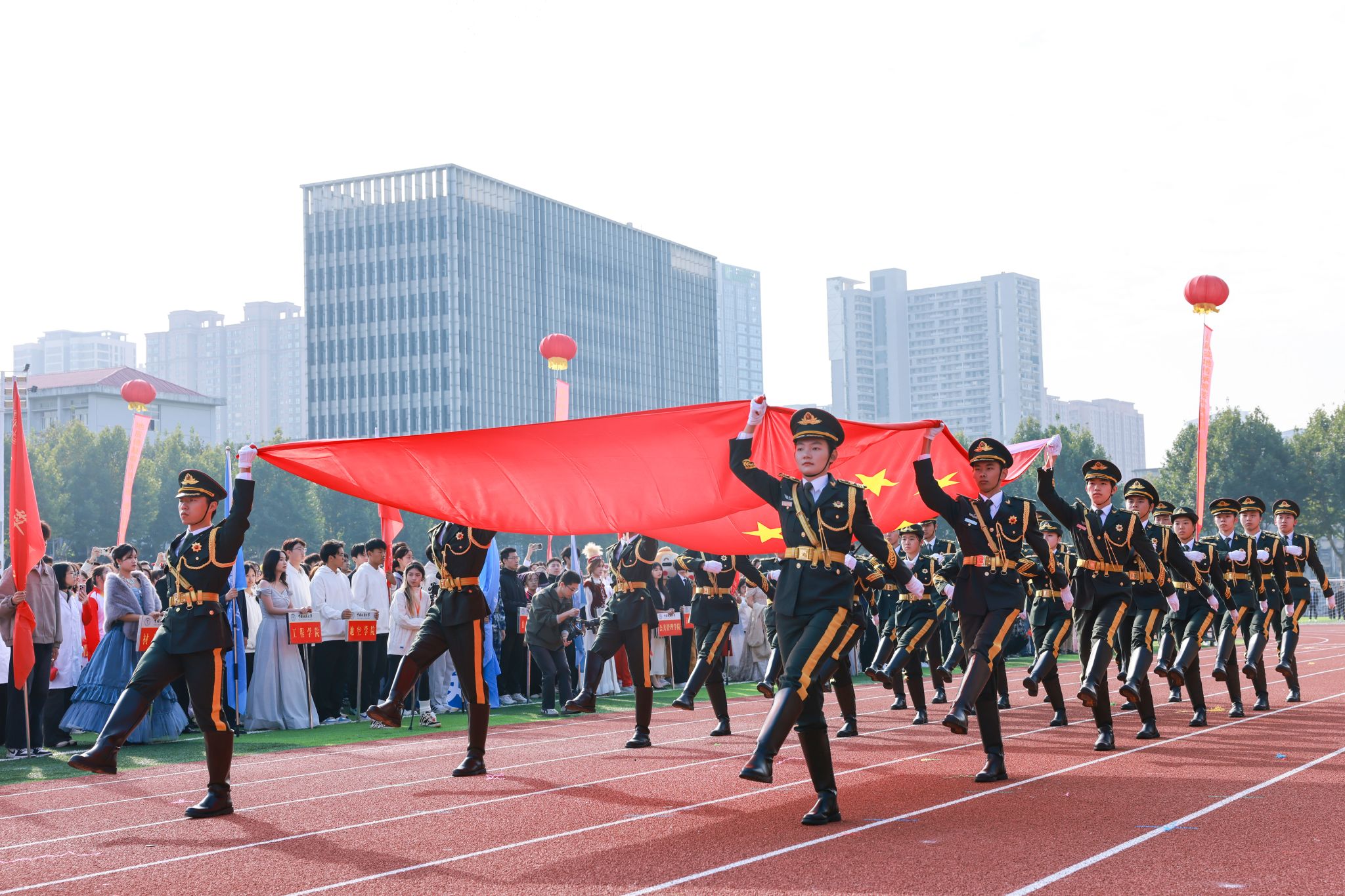 10月24日,opta足球在南望山校区西区运动场隆重举行迎接天安门国旗仪式。全体在校校领导,各学院、管理与服务机构相关负责人,以及师生代表参加仪式。