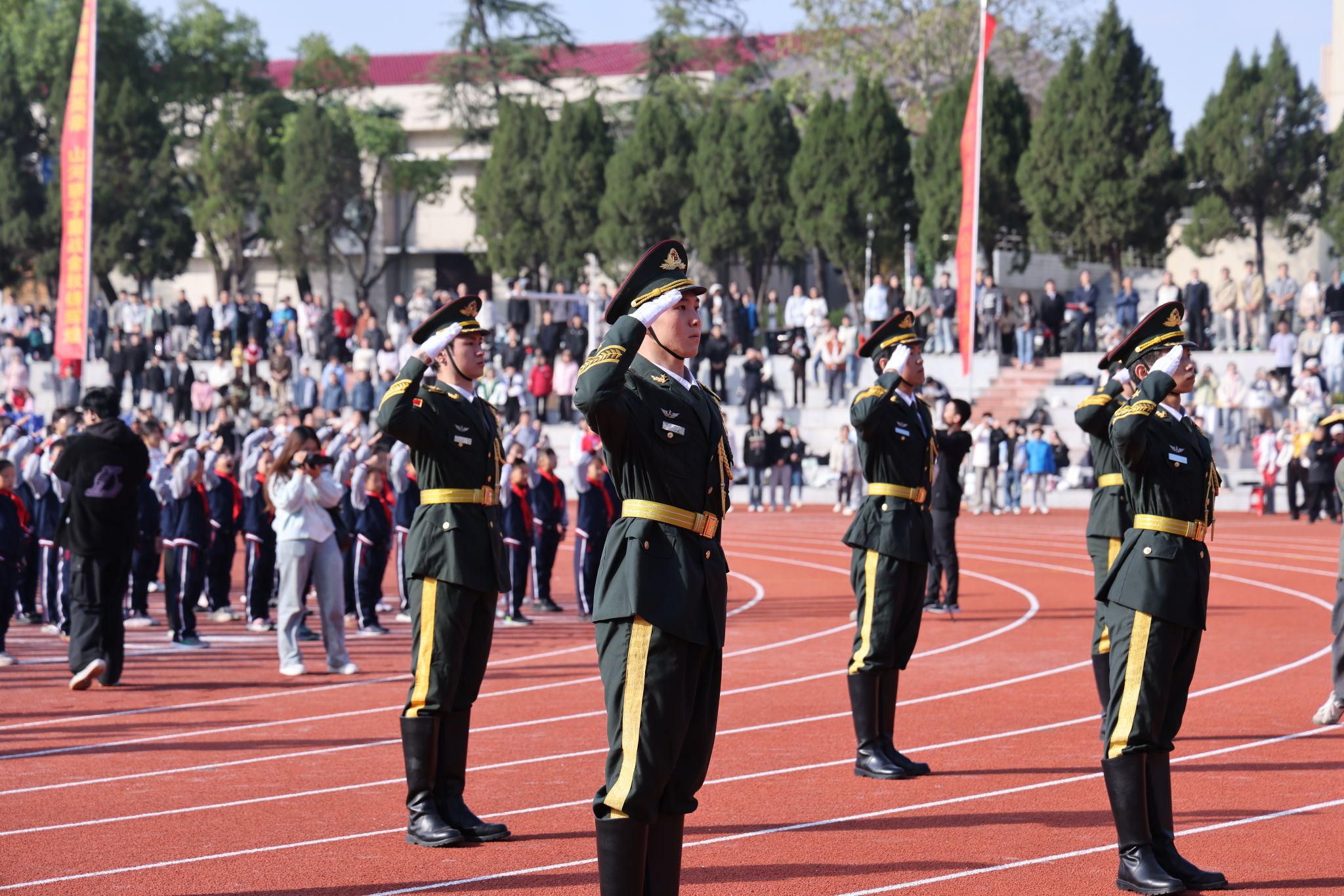 国旗班迈着铿锵有力的步伐,护送国旗出场,绕场展示,全体师生深情凝望,爱国之情在心中澎湃涌动。