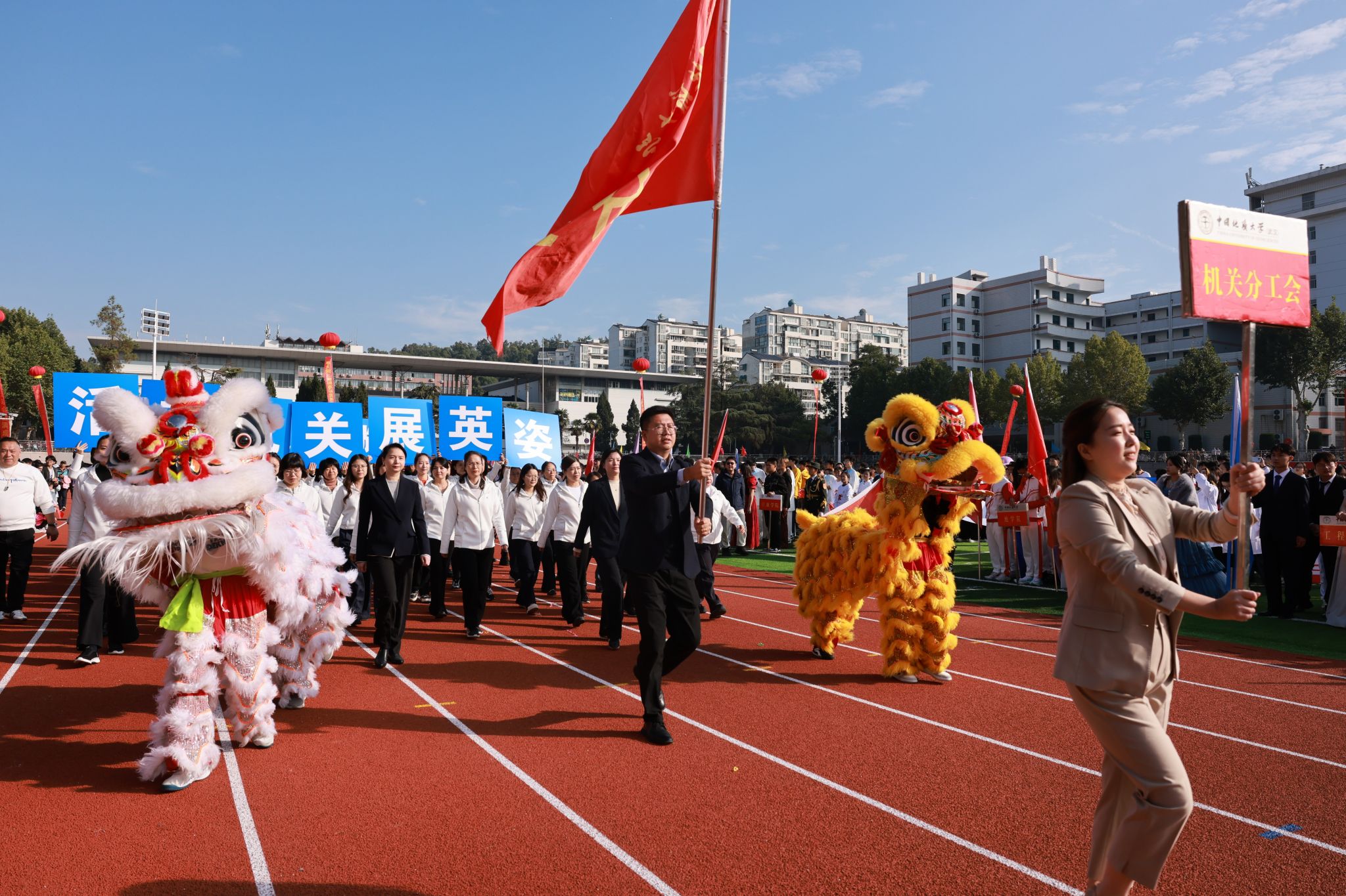校长李建威致辞。他指出,学校始终将体育运动与事业发展紧密结合,形成了以登山、攀岩为特色的体育传统,“为国攀登”的精神已融入opta足球人的血脉,并延伸至“上天入地、下海登极”的各个科研领域。学校坚持服务“体育强国”“健康中国”战略,积极推动群众体育与专业体育共同发展,营造了浓厚的校园体育文化氛围,并在国内外赛场上成绩斐然。他号召,师生以运动会为新起点,弘扬奥林匹克精神,将赛场上的拼搏、协作与进取精神,转化为推动学校发展的强劲动力,为建设地球科学领域世界一流大学奋勇前进。