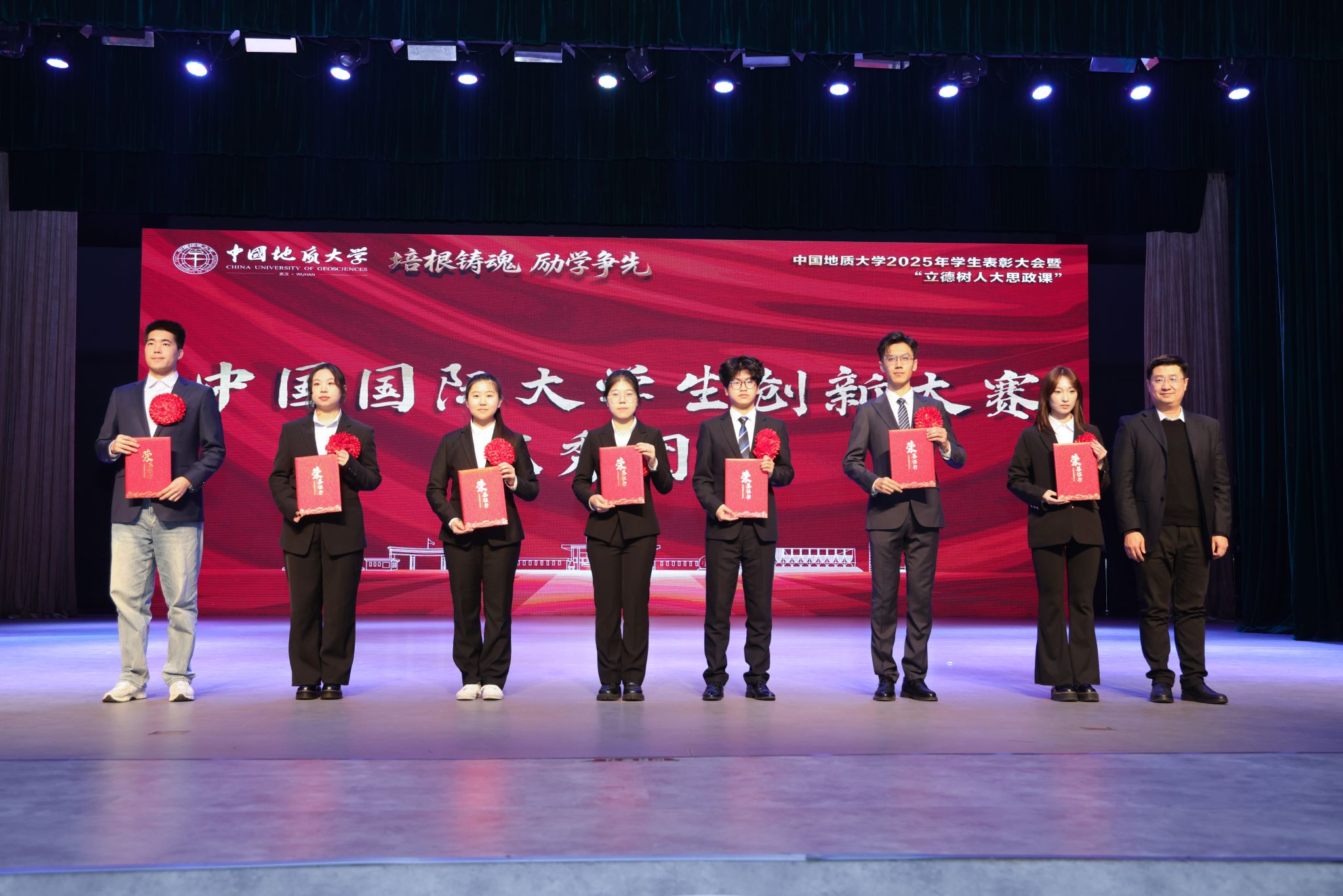 校党委副书记王甫宣读《关于2024-2025学年度奖学金、先进集体和优秀个人表彰决定》。大会共表彰先进班集体74个,先进班集体标兵20个,中国国际大学生创新大赛(2025)“优秀团队”7支,“国家奖学金”获得者646人,“国家励志奖学金”获得者588人,“校长奖学金”获得者230人“院士奖学金”获得者145人,“社会奖学金”获得者425人,“创新创业之星奖学金”获得者10人。校领导和嘉宾分别为获奖单位及个人颁奖。