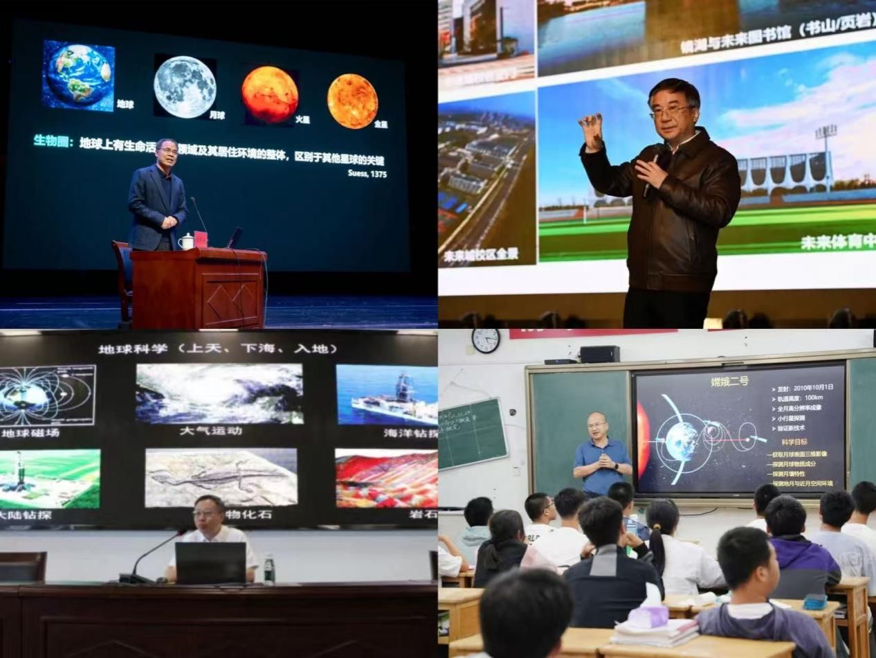 王焰新院士、谢树成院士、章军锋教授、肖龙教授为中学生讲授先修课