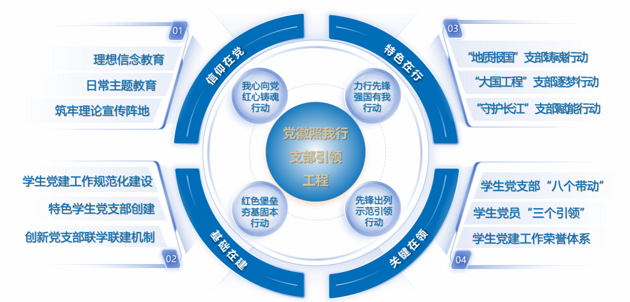 深化“大思政课”建设。把党支部建在实习基地和实践团队,推行师生“同行、同吃、同住、同学、同研”的“五同”传统,让党建思政工作覆盖实践育人全场域、全周期。打造“指南针思想引领”特色品牌,组建“美丽中国讲师团”。打造“震旦讲坛”“地球科学大讲坛”。开展学习党的二十大精神主题系列活动,打造“学习之路”主题实践品牌,引导学生将个人理想融入国家发展大局,厚植家国情怀与社会责任感。
