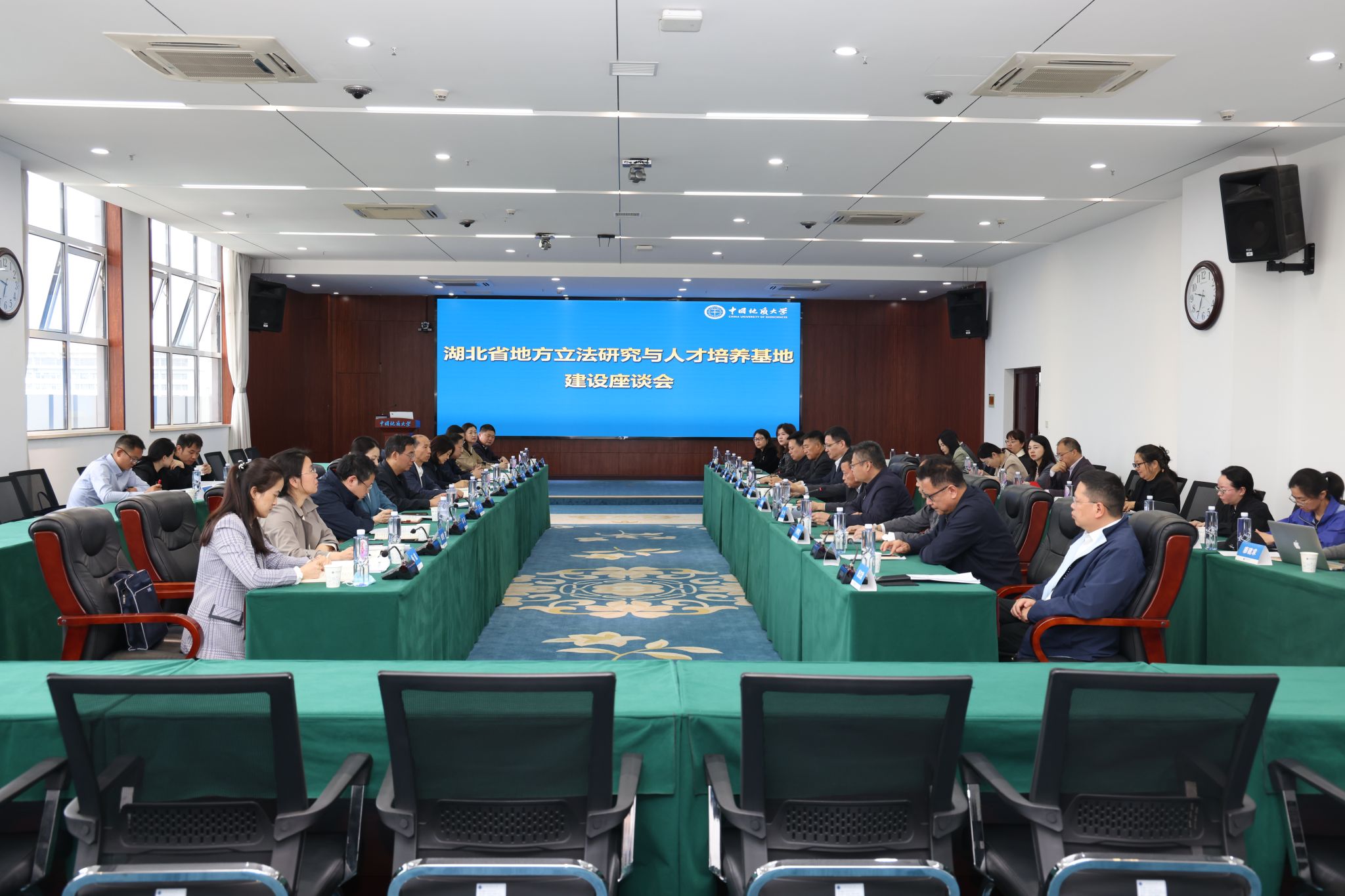刘杰作总结讲话。他代表学校对省人大常委会及法工委长期以来的信任与支持表示感谢。学校将全面贯彻习近平法治思想与生态文明思想,立足地学优势,推动“管法融合、地学赋能”,重点做好四方面工作:一是强化政治引领。坚持党的领导,紧扣省委中心工作与省人大立法规划,确保基地建设方向正确,服务大局、服务人民、服务湖北法治实践。二是聚焦特色领域。围绕自然资源、生态环境及湖北长江大保护、流域综合治理等重点领域,开展前瞻性立法研究,提供高质量立法论证、评估与咨询。三是创新培养机制。探索双导师制、立法工作坊、模拟立法听证等模式,组织学生参与立法全流程实务,培养“懂法律、懂技术、懂治理”的复合型立法后备人才。四是完善运行保障。加强人财物投入,落实联席会议、考核评估等制度,深化与省人大法工委及兄弟基地协同联动,确保基地规范高效运转,力争后来居上、多出成果。