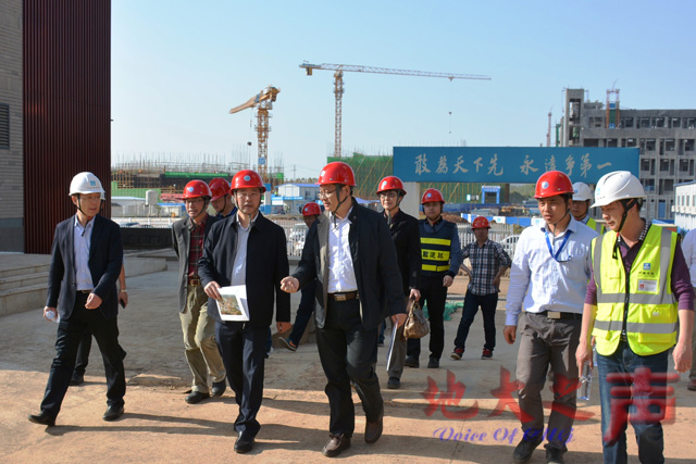 何光彩首先检查了项目安全文明施工与工程样板展示区,进入学生宿舍一组团查看样板间,登上3#楼天台俯瞰新校区全貌。随后,沿校内环路巡检了各标段,了解了项目进展情况,重点查看了国家重点实验室大楼、公共教学楼教室及样板间。