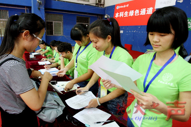 “绿色通道”工作人员热情为家庭经济困难新生服务 张鸿摄