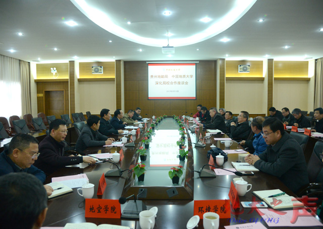 王焰新讲话。他表示,学校要实现地球科学领域世界一流大学的长远办学目标,就必须要持续加强和巩固与地矿行业单位的深度合作。学校愿意在人才培养、科技合作、平台建设方面与贵州地勘局开展深入合作。他要求,学校各部门、各学院要明确职责,加强协作,以点带面,扎实推进局校合作。