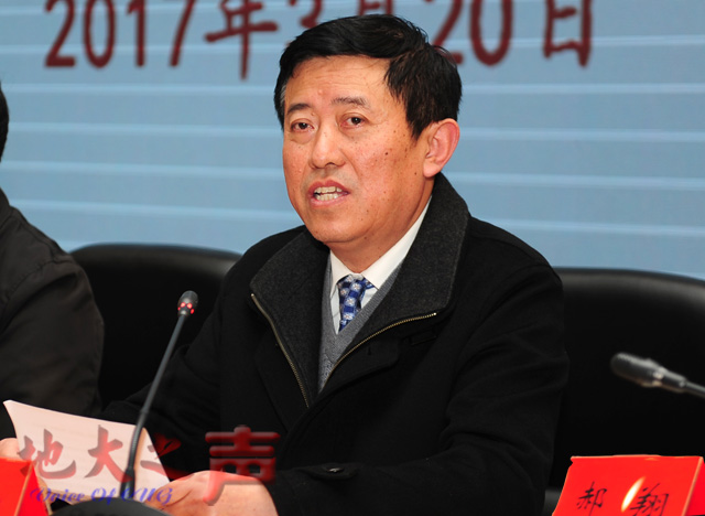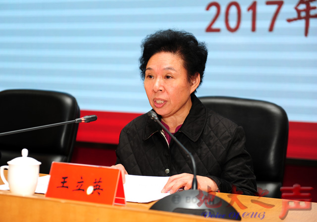 王立英同志代表教育部党组对学校下一步工作提出了三点希望:一是要把学习贯彻全国高校思想政治工作会议精神作为首要政治任务。希望学校党委把贯彻落实全国高校思想政治工作会议精神与学习贯彻党的十八大和十八届历次全会精神、习近平总书记系列重要讲话精神结合起来,积极探索和解决好高等学校“培养什么人、如何培养人、为谁培养人”这个根本问题,切实增强“为人民服务、为中国共产党治国理政服务、为巩固和发展中国特色社会主义制度服务,为改革开放和社会主义现代化建设服务”意识,切实增强扎根中国大地,办好中国特色社会主义大学的使命感、责任感和紧迫感,要紧密联系学校工作实际,把贯彻全国高校思想政治工作会议的精神与加强学校的党建、推进综合改革结合起来,落实落细。二是要全面深化综合改革。大力推进地球科学领域世界一流大学和一流学科建设,紧紧抓住国家实施“双一流”建设的战略机遇期,统筹国家战略需求和学校发展实际,进一步明确发展定位,理清发展思路,凝练学科方向,加快推进以地球科学为主导,多学科相互支撑、协调发展,特色鲜明的学科建设步伐,积极发展战略型新兴产业学科,不断提高服务国家创新发展的能力,要大力实施人才强校战略,加快引进和培养一大批高质量的人才、优秀青年人才,系统构建人才工作的制度体系,着力夯实学校发展战略人才储备基础,要加大制度创新力度,全面深化教育教学改革、科技创新、资源配置等方面的体制机制改革,全面提高学校综合实力和办学水平。三是要深入推进全面从严治党工作。学校党委要切实增强大局意识、阵地意识,把推进“两学一做”学习教育常态化、制度化作为履行全面从严治党的主体责任,把全校师生紧密团结在以习近平同志为核心的党中央周围,始终坚持社会主义办学方向,牢牢掌握党对高校工作的领导权,大力加强领导班子建设,认真贯彻党委领导下的校长负责制,不断提升承担管党治党、办学治校主体责任的能力,领导班子成员要坚决成为“两学一做”的模范,带动全校营造风清气正的良好政治生态,坚持以先进文化为引领,创建良好的育人环境;要切实加强学校党的基层组织建设,不断规范党内政治生活,强化党内监督,推动全面从严治党向纵深发展,保证学校始终成为培养中国特色社会主义的合格建设者和可靠接班人的坚强阵地。团结带领广大教职员工,以只争朝夕的主人翁精神,以更加昂扬的斗志,锐意进取、改革创新,推动学校党建和各项事业发展不断取得新的突破,以优异的成绩迎接党的十九大的胜利召开。