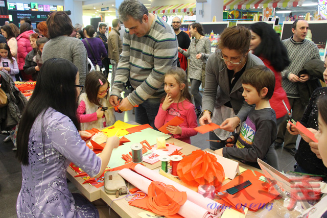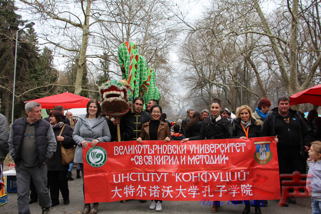 2月22日,在大特孔院下设孔子课堂鲁塞瓦希尔.列夫斯基中学举办“金鸡贺岁”中保春节联欢晚会。鲁塞大学校长彭切娃,瓦希尔.列夫斯基中学校长甘切夫等嘉宾与700余名学校师生及家长参加了活动。中小学生们带来的精彩武术、歌曲、舞蹈、书法表演,博得现场观众的阵阵掌声。25日,在大特尔诺沃市中心商场隆重举办了“中国文化日”。6个多小时的文化活动中,书法、中国结、剪纸、茶艺、传统服装体验等展示中国传统文化的活动吸引了1000多名大特尔诺沃市的市民纷纷参与、争相体验中国传统文化。特别是孔子学院提供了上百套中国传统服装供市民挑选、试穿,并布置了中国风味的背景,吸引了数百名市民体验、拍照留恋。26日,大特孔院组织了一支舞龙队,舞动一条30米多长龙,亮相保加利亚颇具盛名的传统节日——扬博尔面具节。龙灯所到之处,引发连连惊叹和围观。