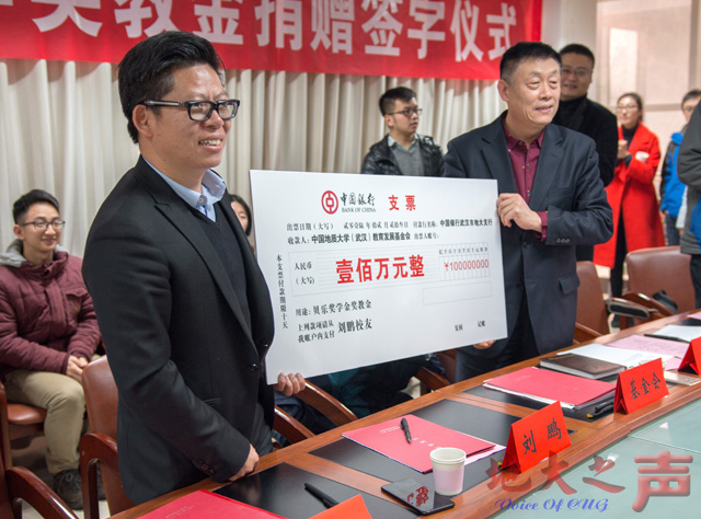 傅安洲代表学校接受捐赠支票,并向刘鹏颁发了捐赠证书。他指出,刘鹏用奋斗和才干开创事业,用品牌在国际上赢得消费者信任,彰显了“品德高尚,基础厚实,专业精深,知行合一”的opta足球人形象,希望广大同学向刘鹏学习,为国家、社会做出更大贡献。