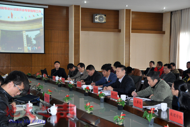 11月4日上午,现场考查意见反馈会在惠宾楼四楼会议室召开。校党委副书记傅安洲,专家组全体成员,校相关职能部门及学院负责人、全体专业教师参加意见反馈会。