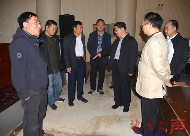 赵建军一行前往学校北区校门、体育拓展训练基地、西区隧道口、博物馆、水电中心等地,现场查看了部分滞水灾害重建项目和改善办学条件项目的建设现场。